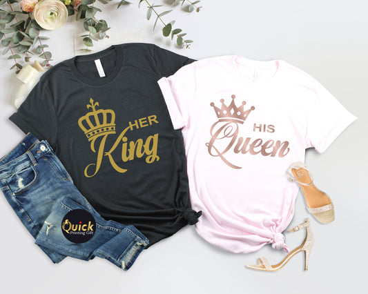King Queen Matching Couple T-Shirts: Honeymoon Gift