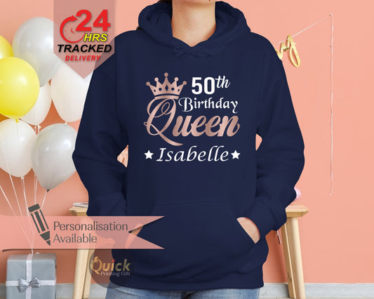 Personalized 50th Birthday Queen Hoodie: Rose Gold Print