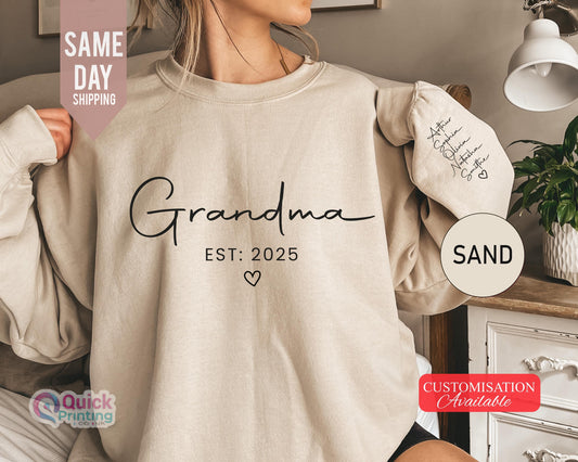 Personalized Grandma Sweatshirt: Grandkids Names on Sleeve, Est. Year