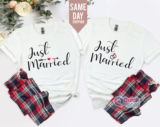 Just Married T-Shirt Set: Matching Couple Honeymoon Shirts