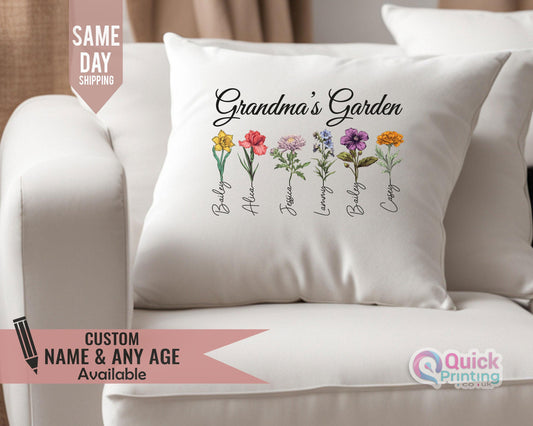 Custom Grandma's Garden Pillow: Personalized Birth Flower Design