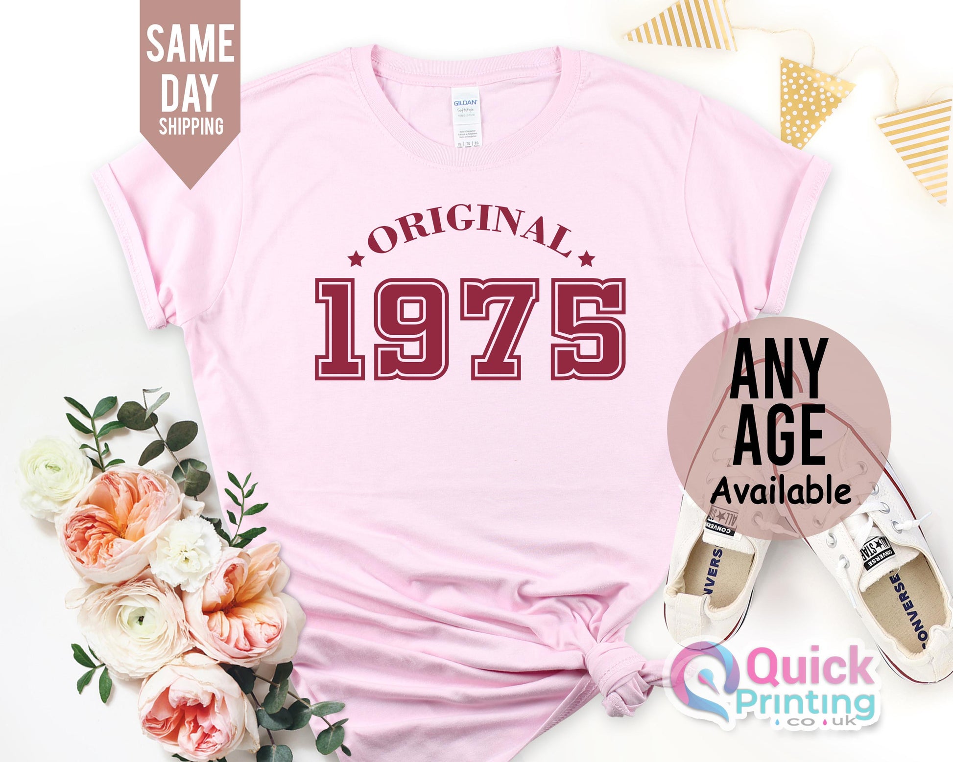 1975 Birthday TShirt UK, 50th Birthday Gifts for Women, 50th Birthday Tshirt, Vintage 1975 Birthday Shirt, Birthday Gift for Mum Grandma Top