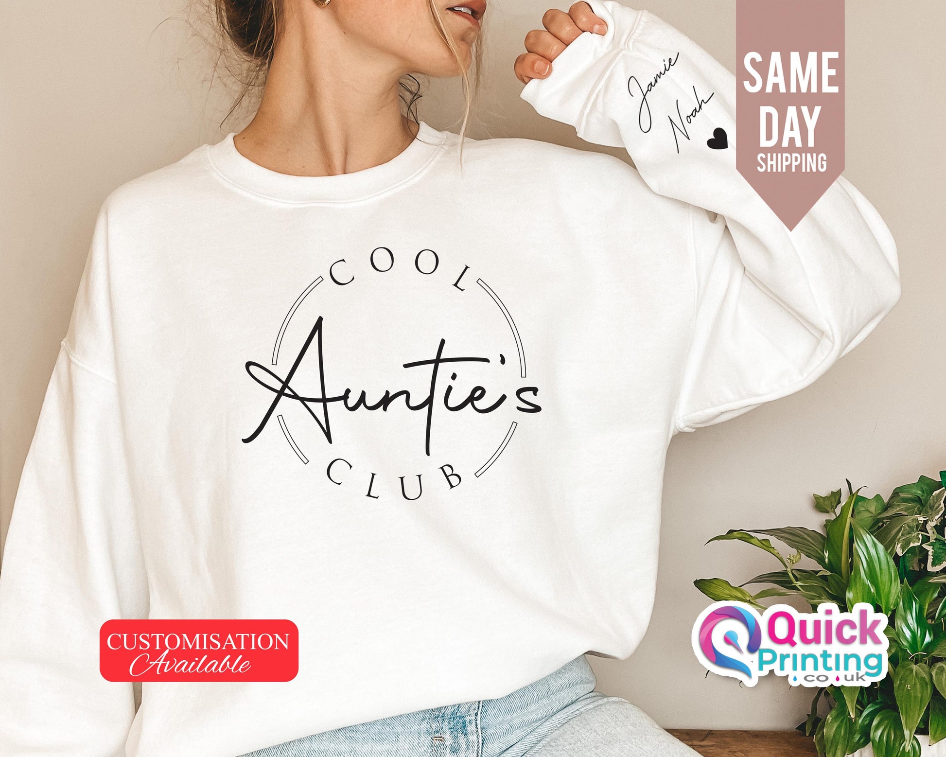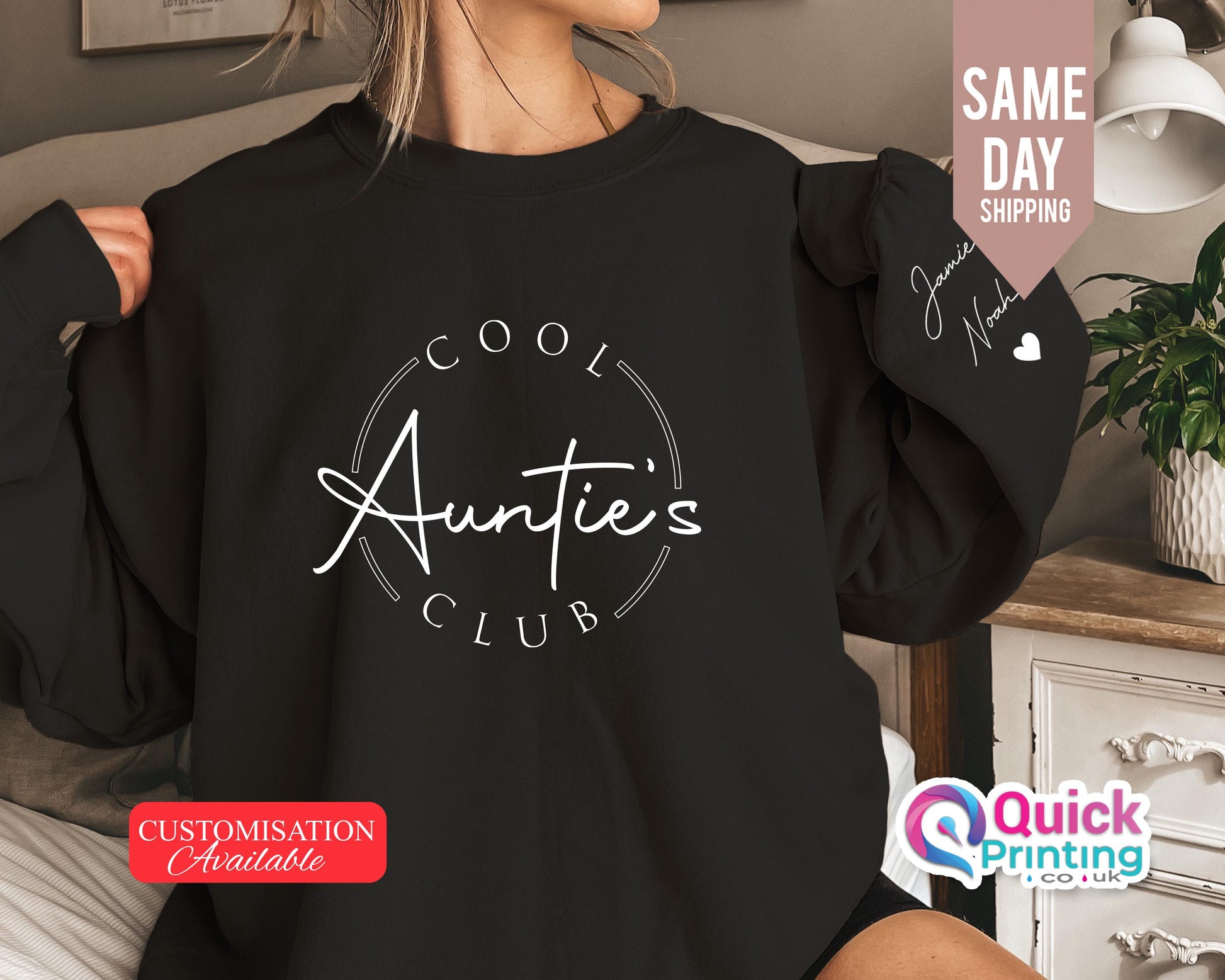 Cool Aunties Club Sweatshirt with Name on Sleeve, Personalized Auntie jumper, Auntie Announcement Sweater, Custom Auntie Sweatshirt, Xmas T