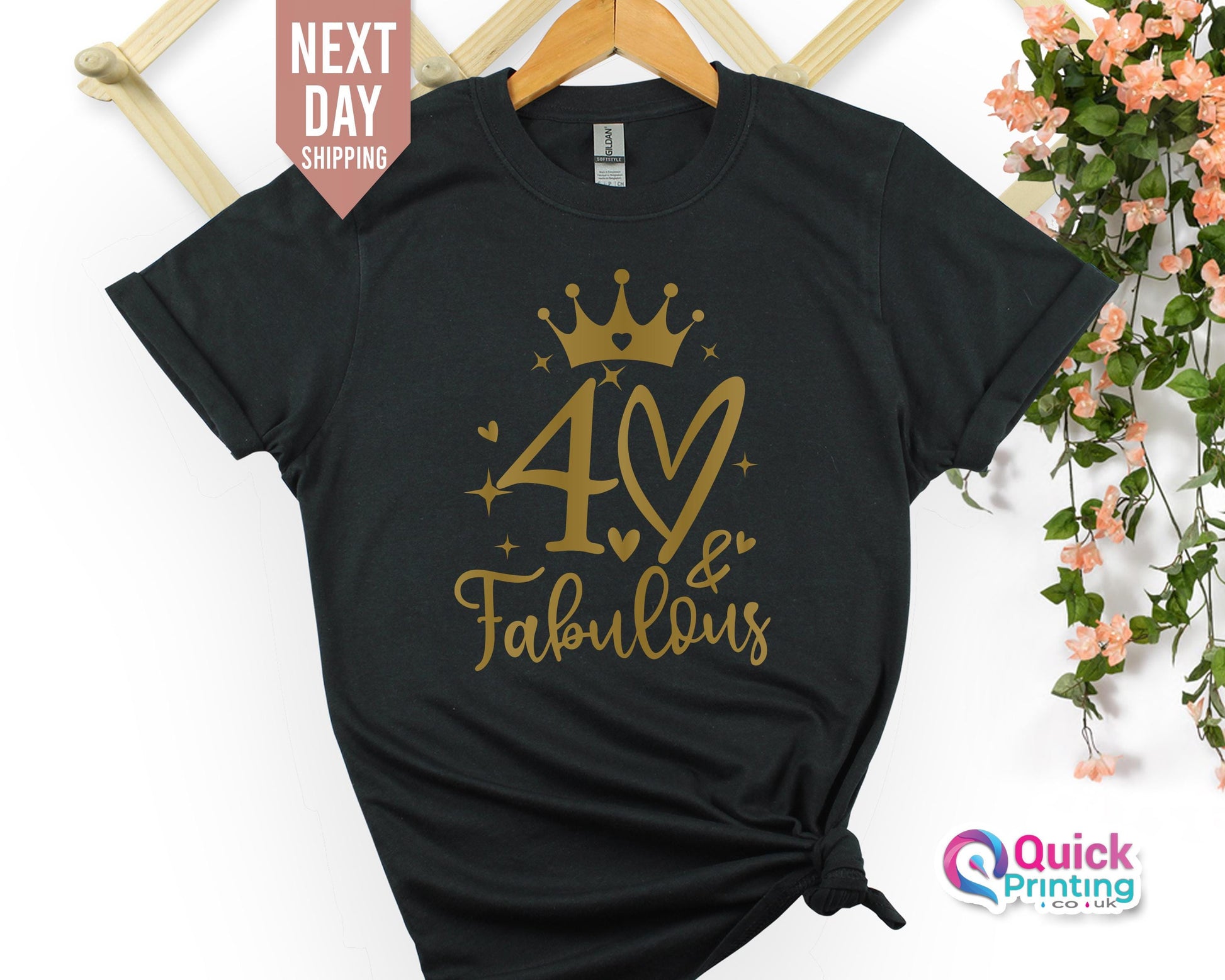 Example: 40th Birthday Queen on White T Shirt