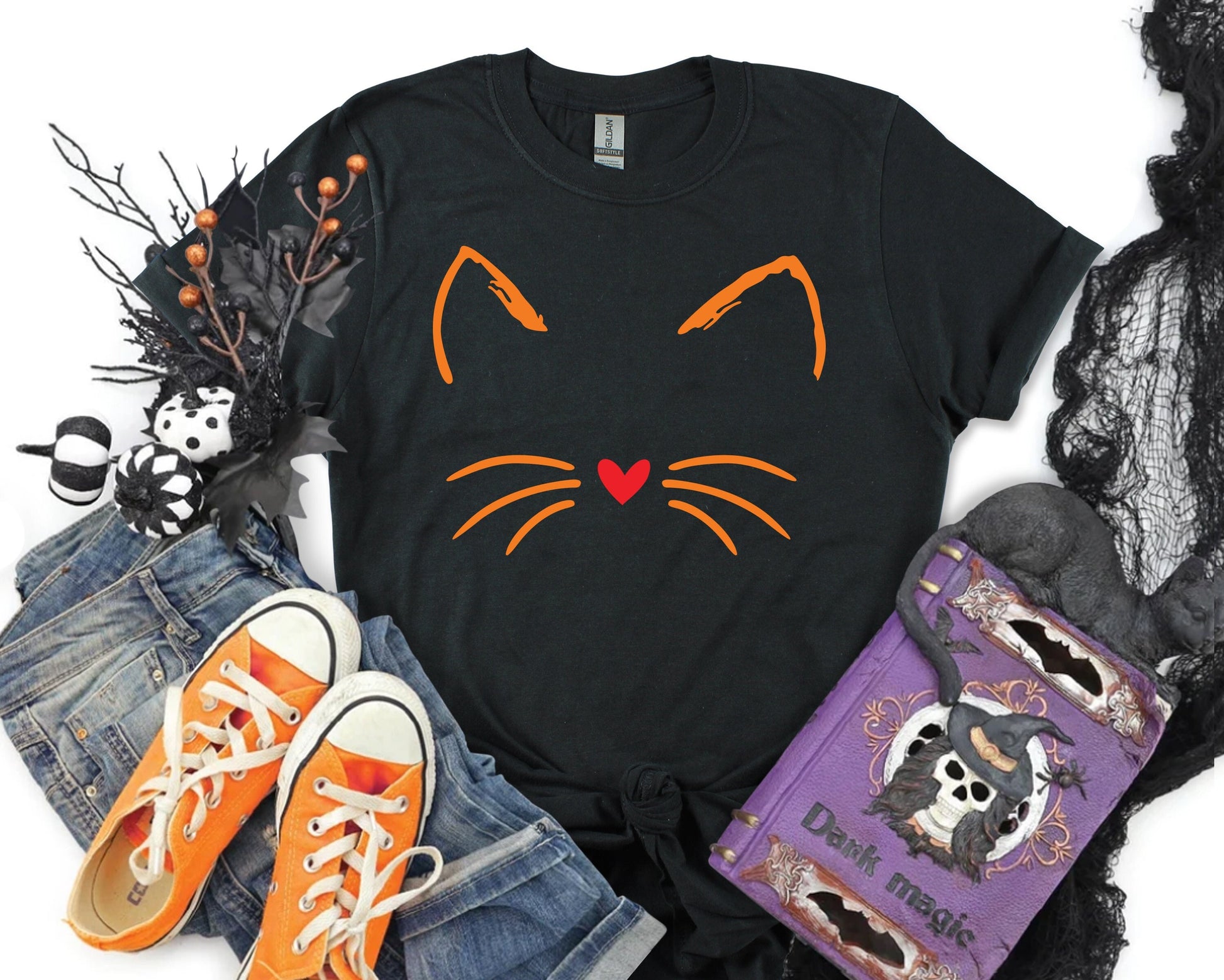 Cute Cat Halloween Shirt, Funny Halloween Tshirt Tops, Halloween Party T-Shirt, Gothic Costume, Cat Lover Shirt Gift