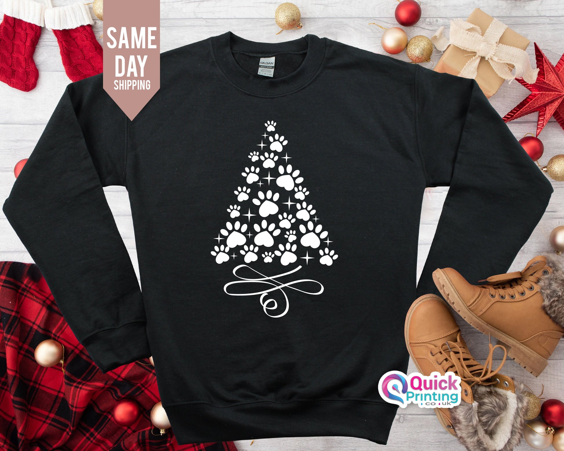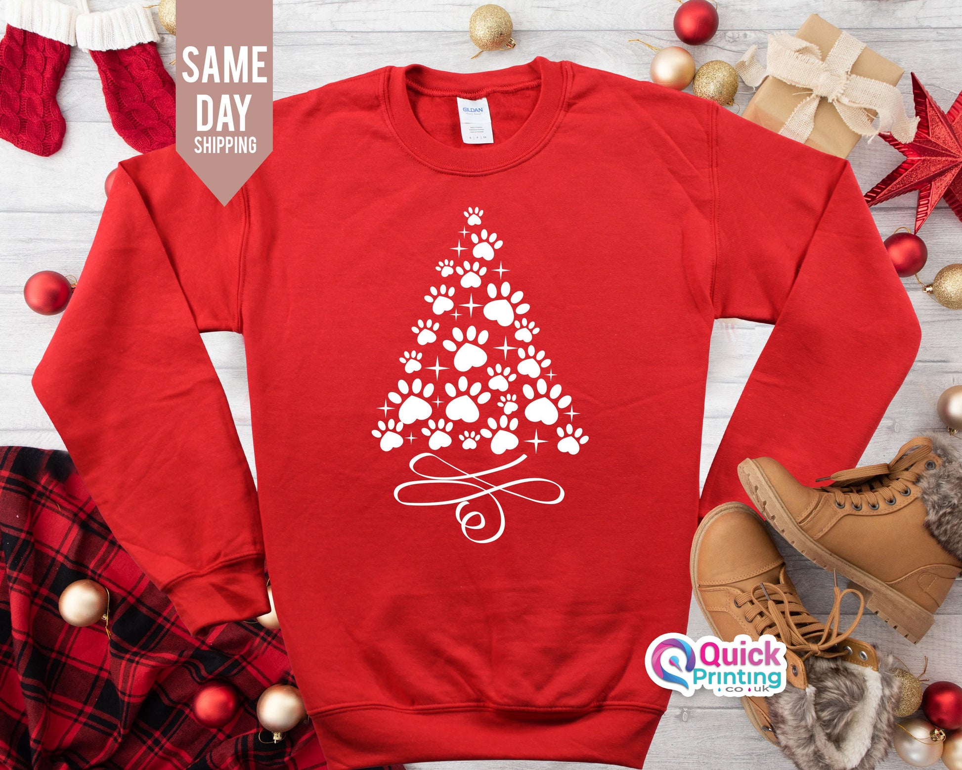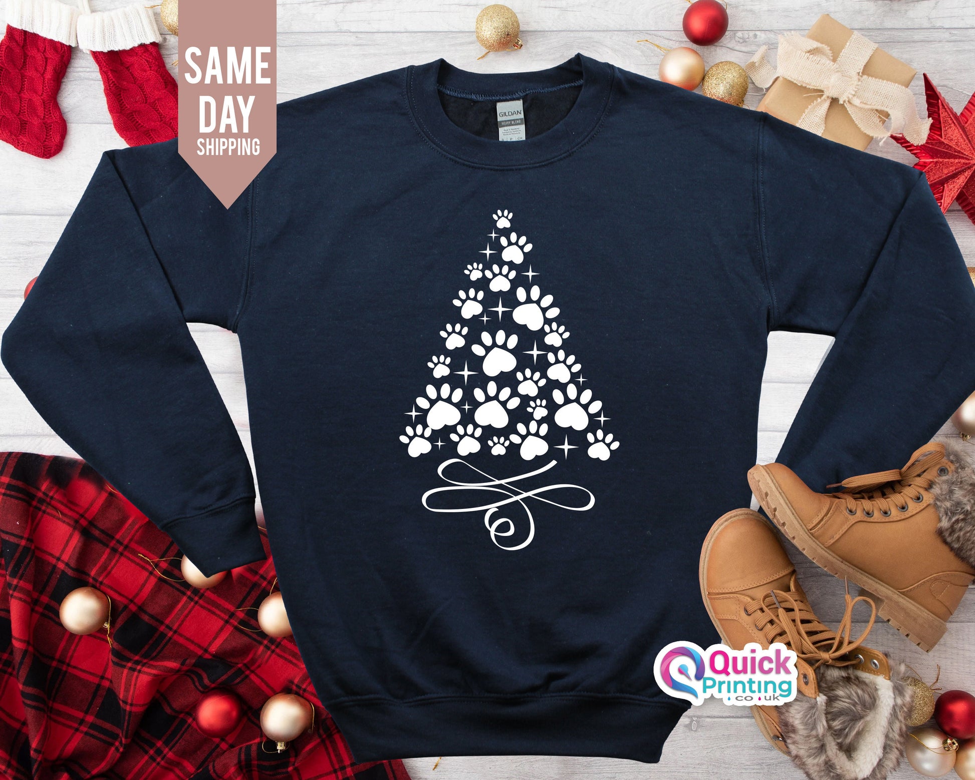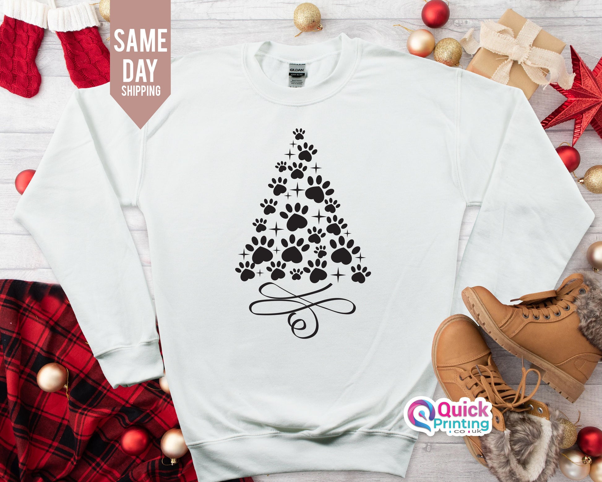 Dog Paw Christmas Tree Sweatshirt: Funny Dog Mum Sweater