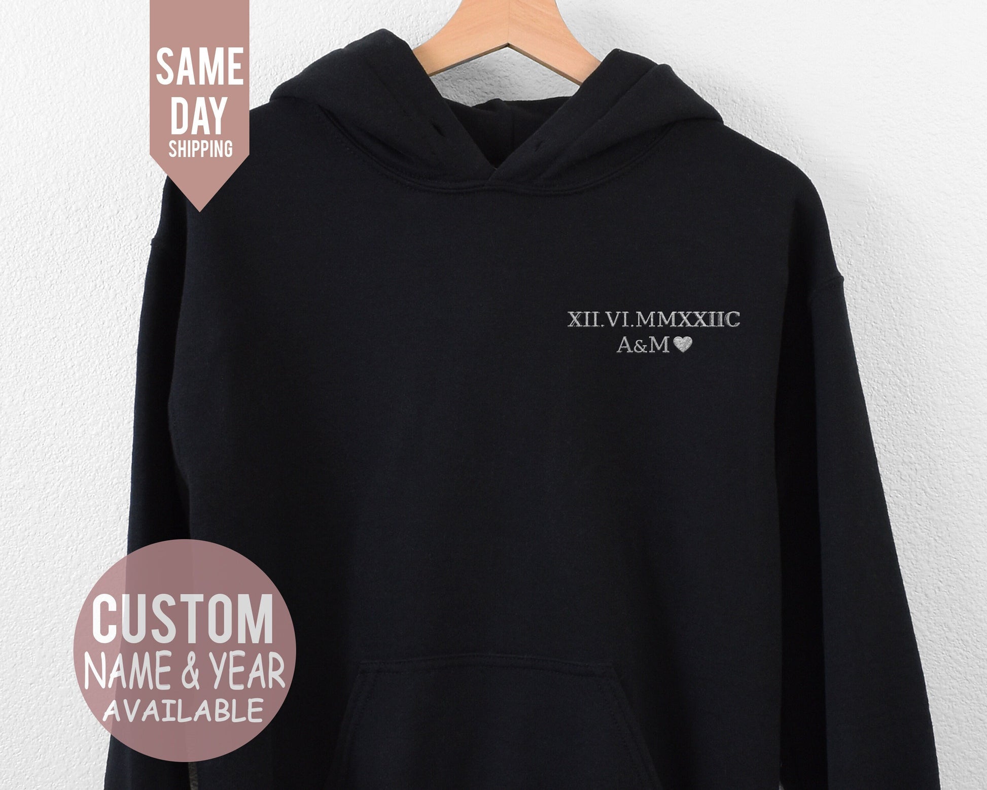 Embroidered Roman Numeral Hoodie: Custom Date Couple Matching Sweatshirt