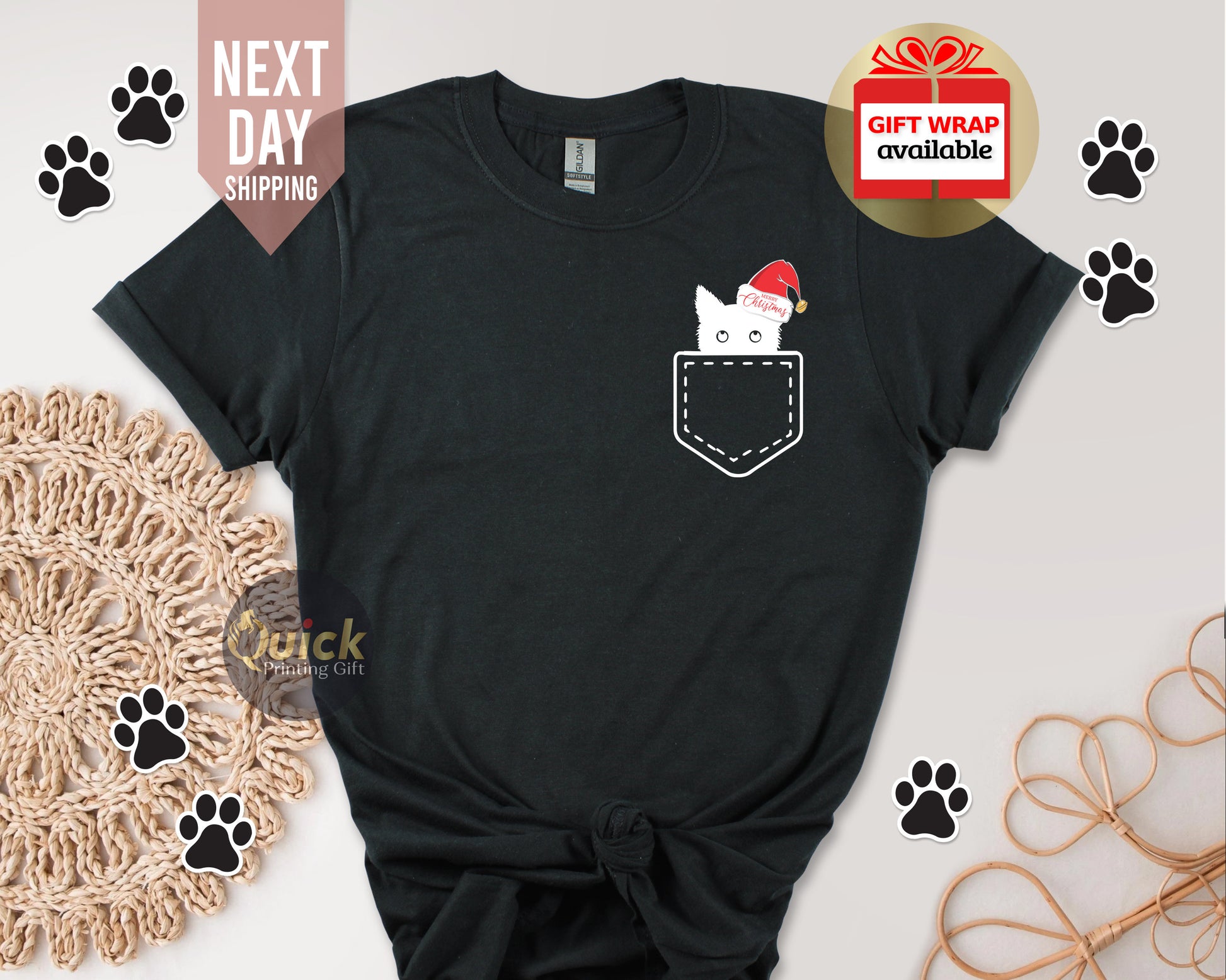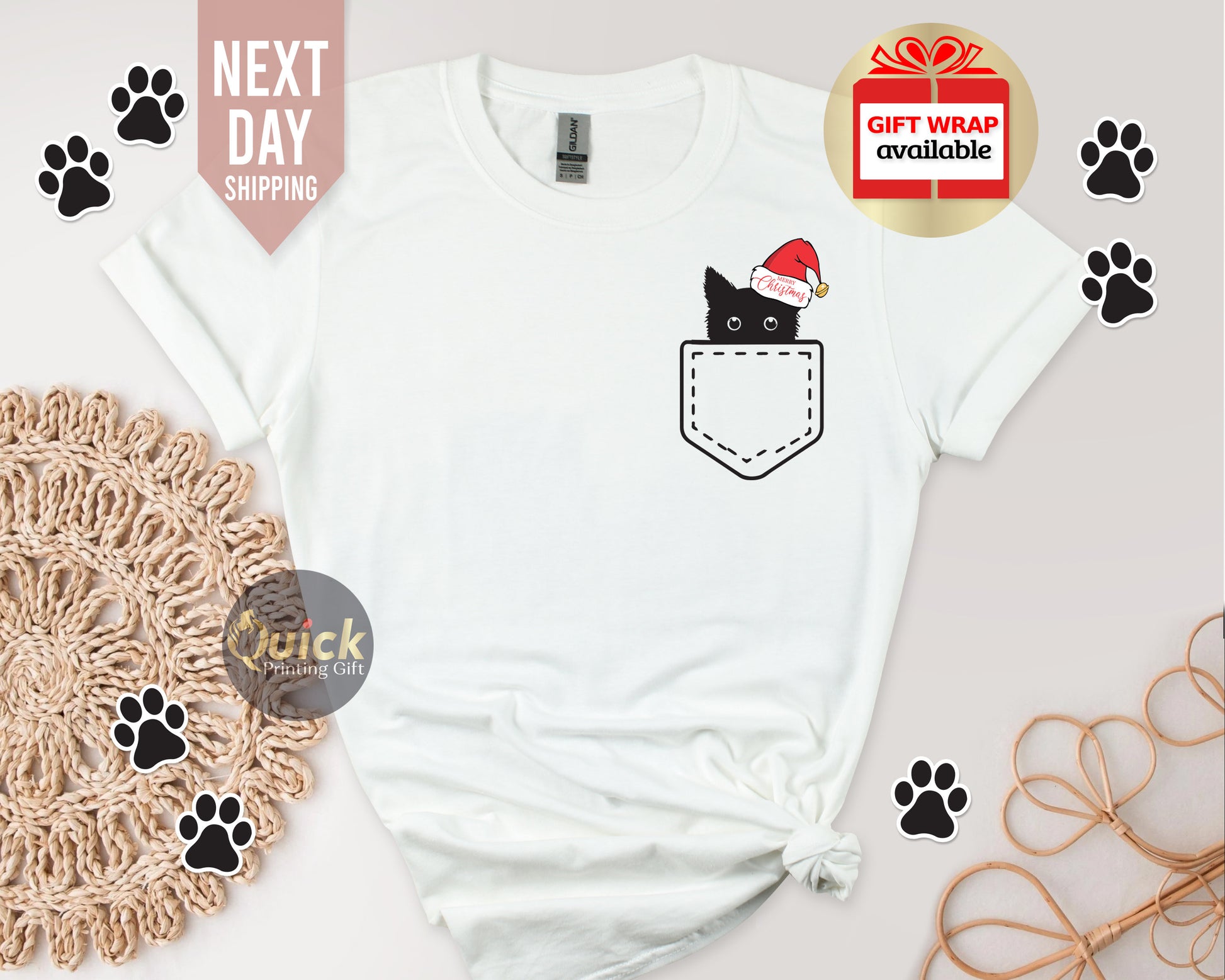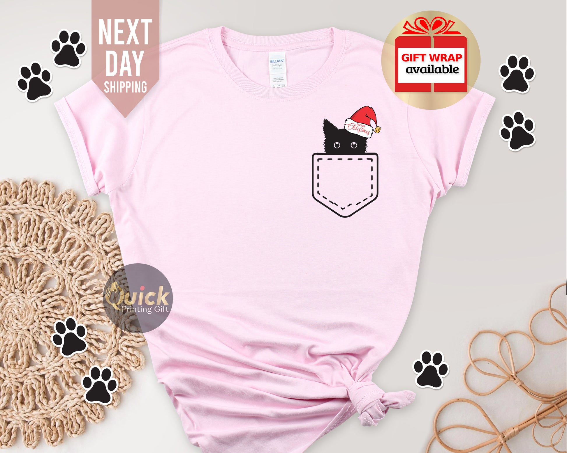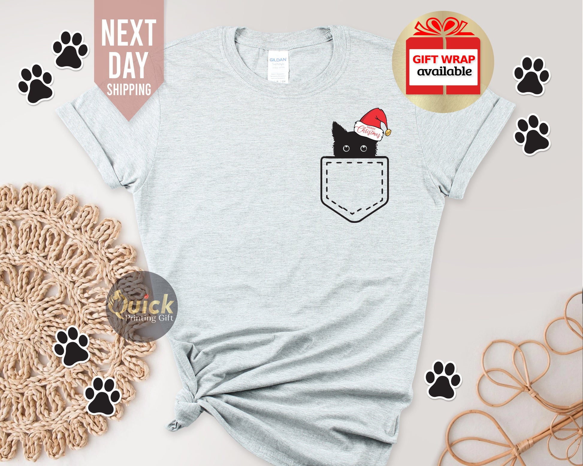 Funny Christmas Cat Pocket T-Shirt: Cat Lover Gift