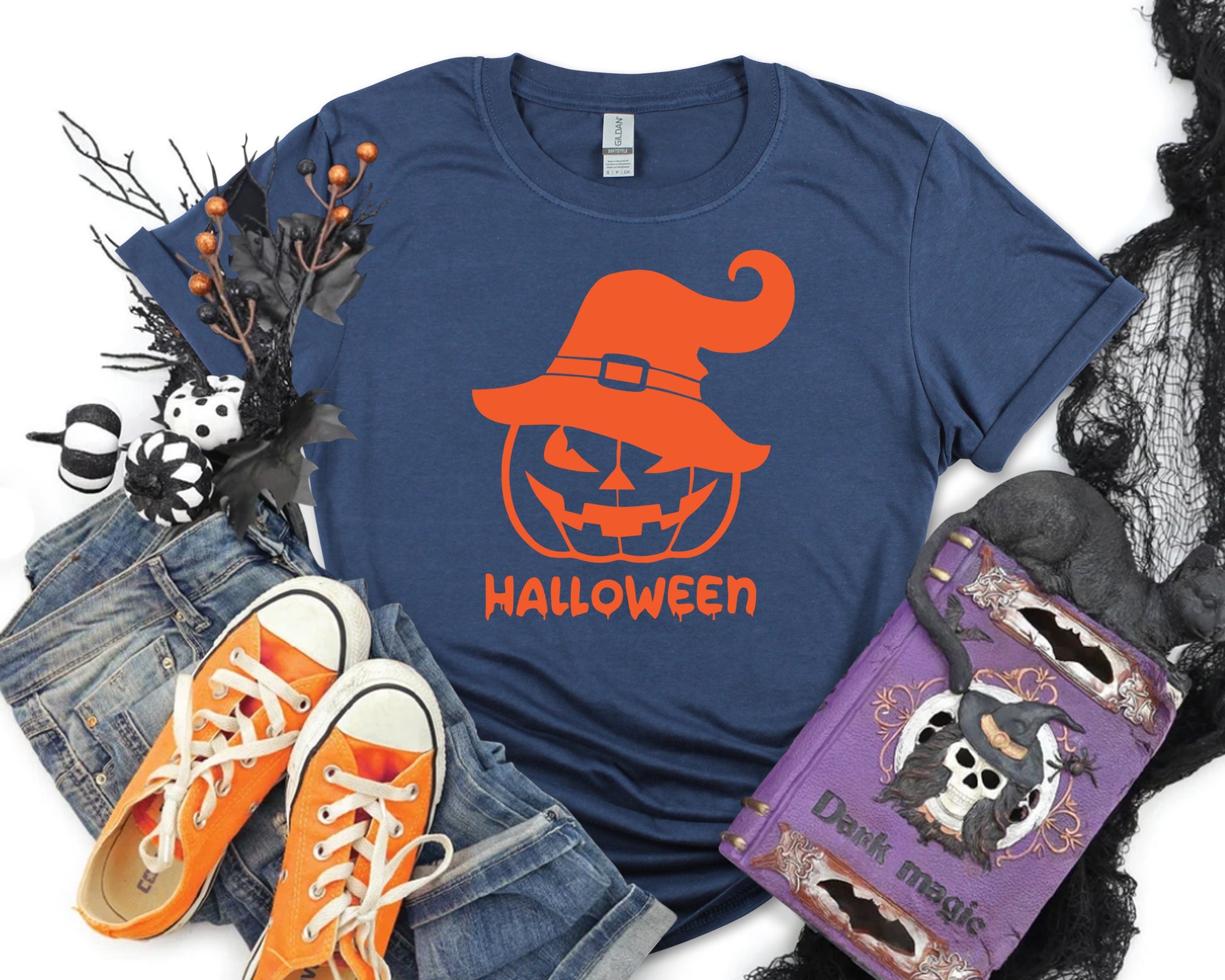 Funny Halloween Pumpkin Face T-Shirt: Trick or Treat Party Costume
