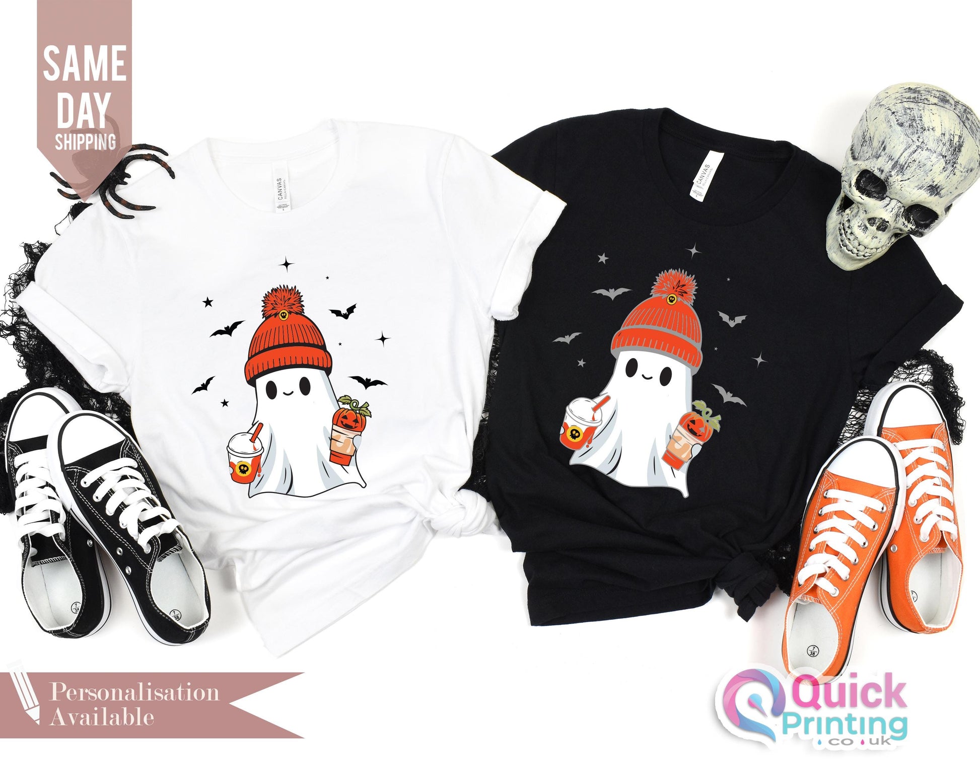 Halloween Ghost T-shirt, Little Ghost Ice Coffee Shirt, Stay Spooky Cute Ghost Shirt, Cute Ghost Shirt, Little Ghost Ice Coffee T-shirt 2024