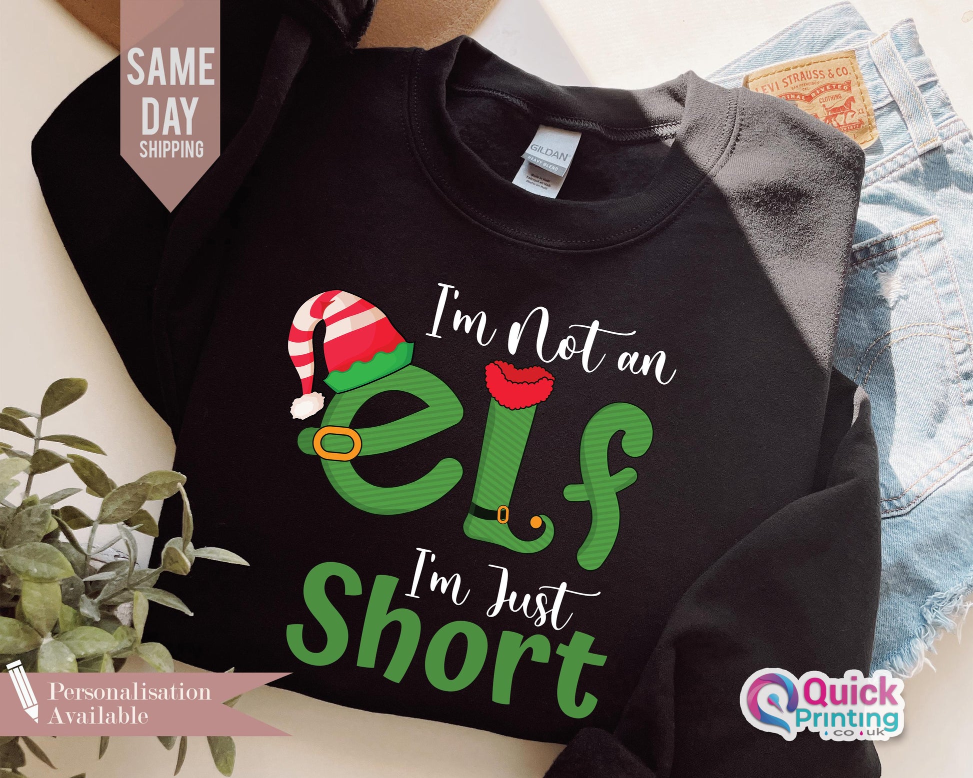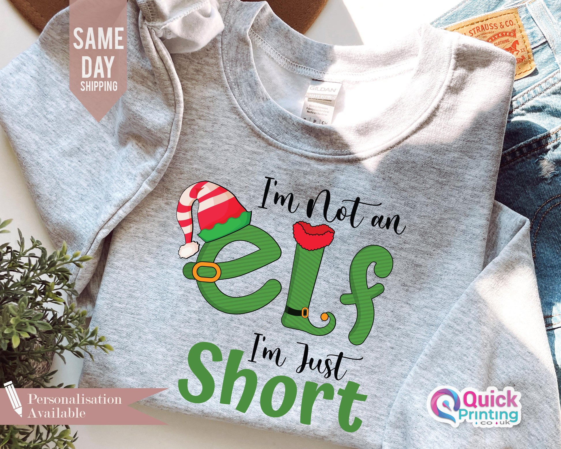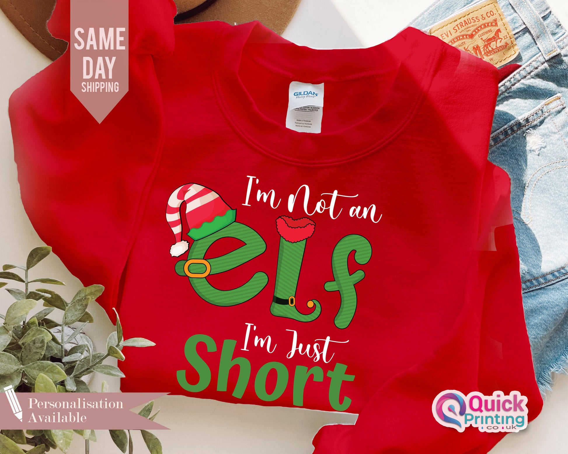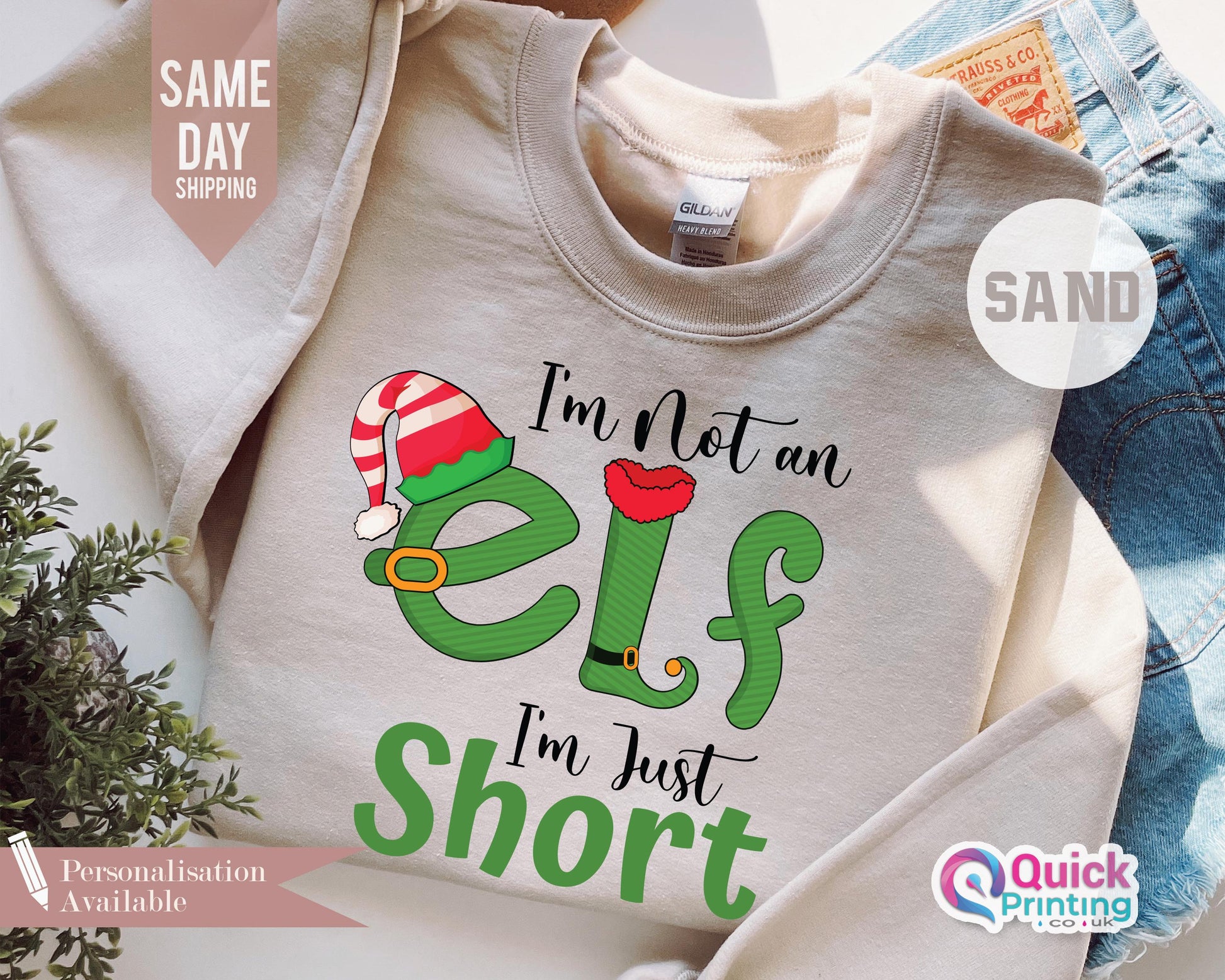I'm Not An Elf I'm Just Short Sweatshirt, Funny Christmas Jumper, Christmas Elf Shirt Unisex Crewneck Sweatshirt, Family Xmas Sweatshirt