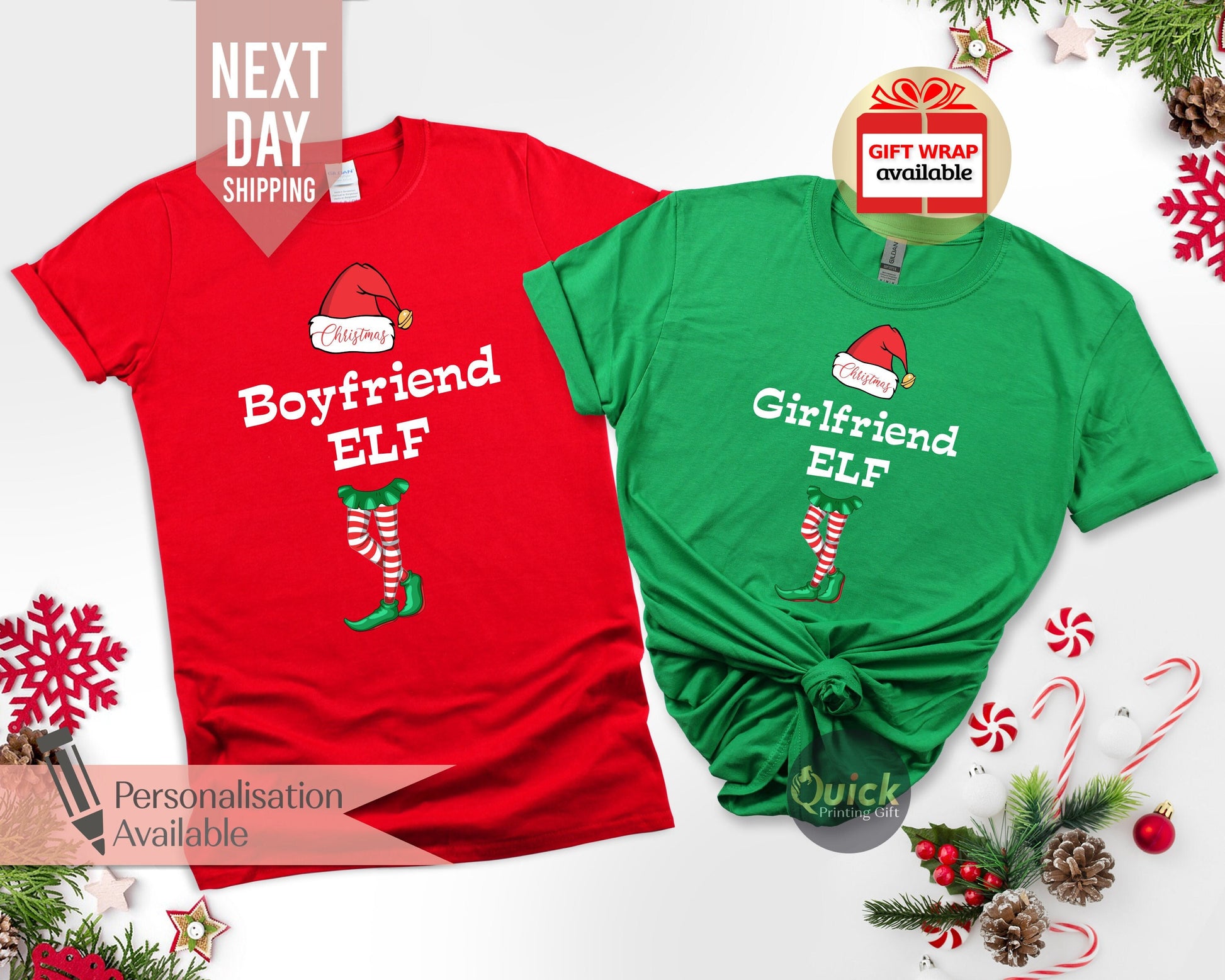 Matching Couple Elf Christmas Shirt: Unisex Holiday T-Shirt