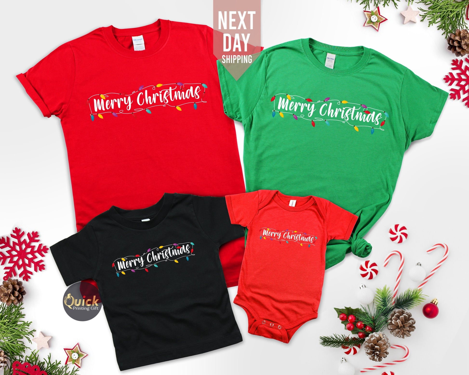 Merry Christmas Lights T-Shirt: Matching Family Holiday Outfit