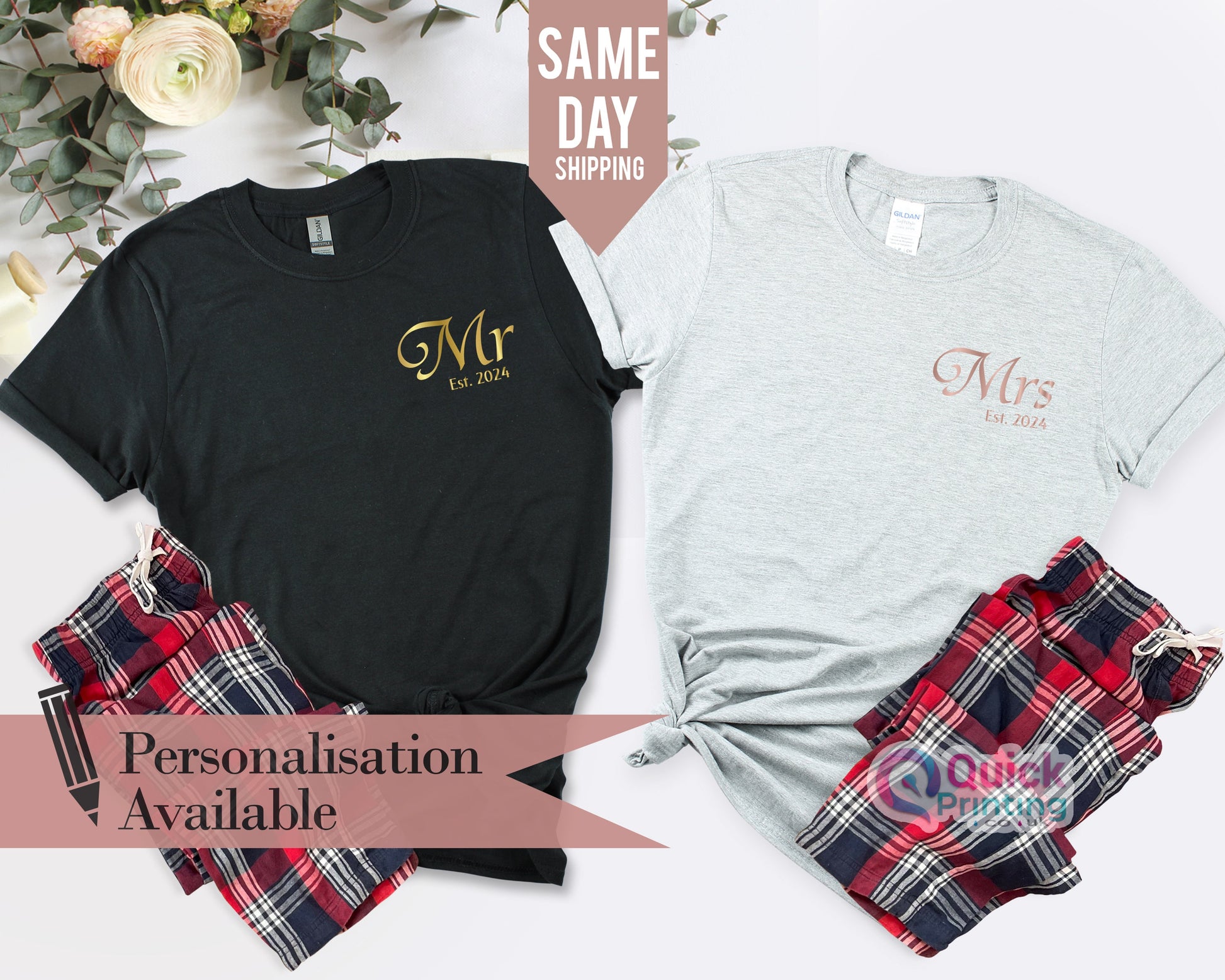 Mr and Mrs Pajama Set: Matching Couple Gift, Flannel Pants