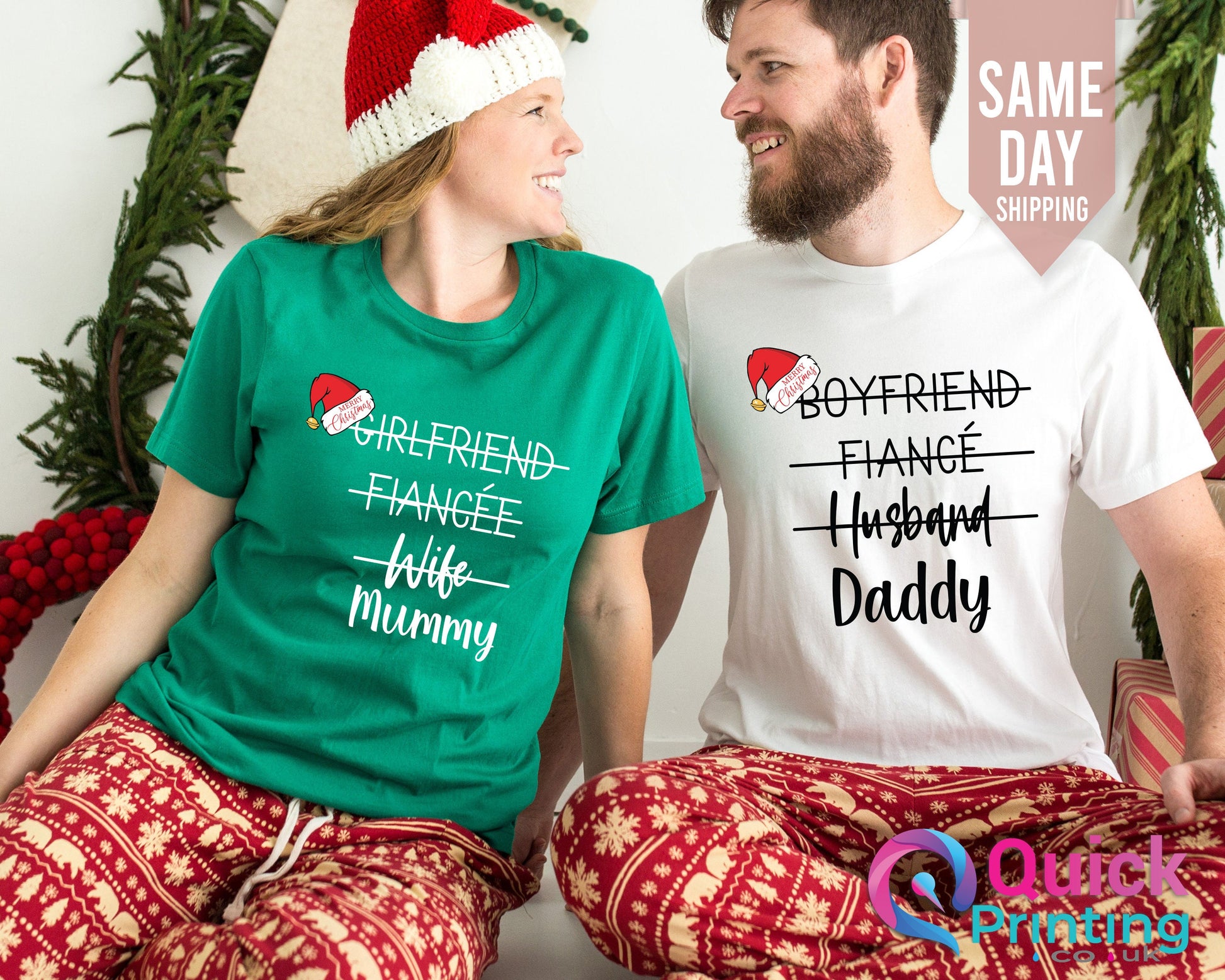 Our First Family Christmas T-shirts, Daddy first Christmas Gift, First Christmas As Daddy Mummy, Hubby & Wifey Couple Christmas Pyjamas Top