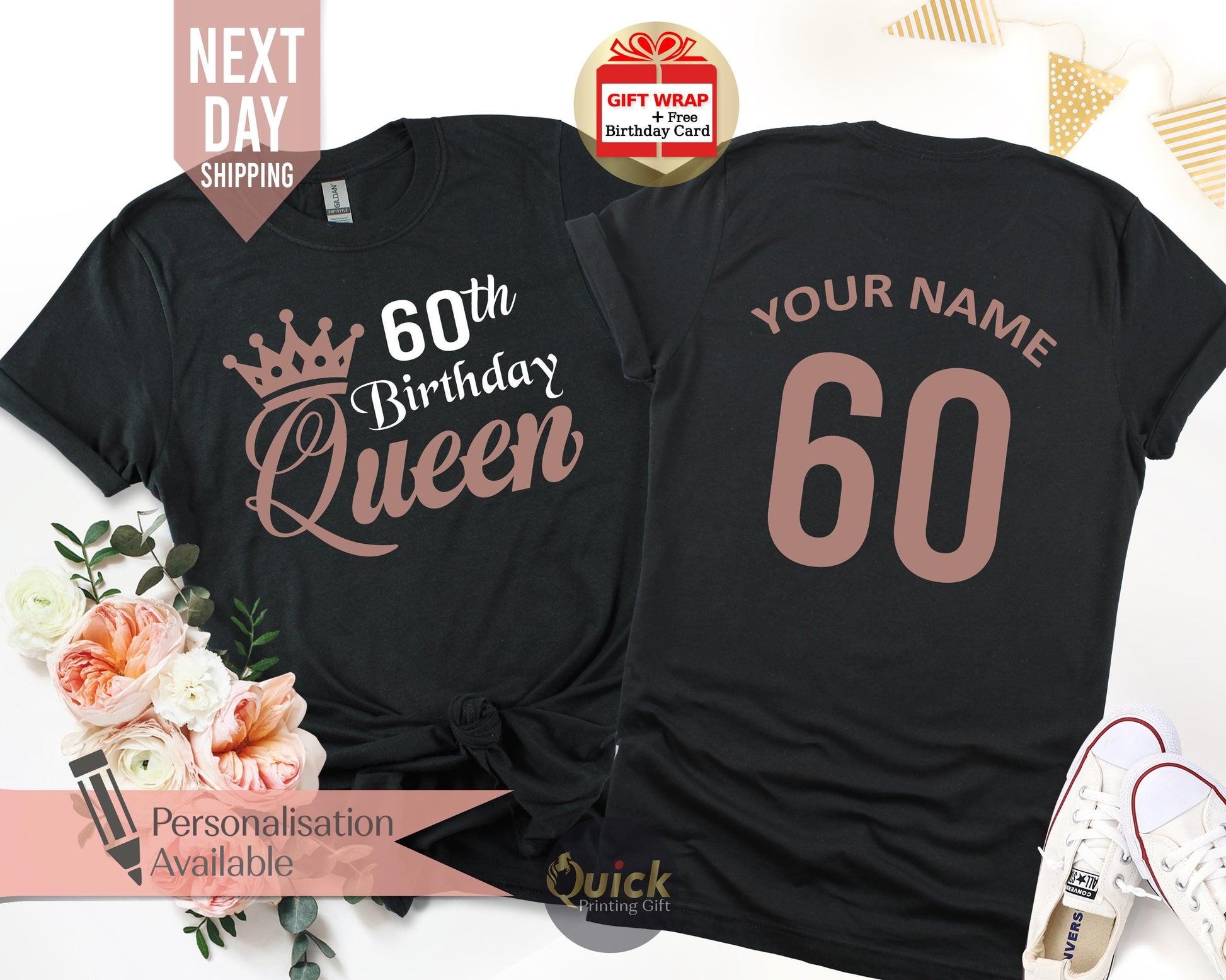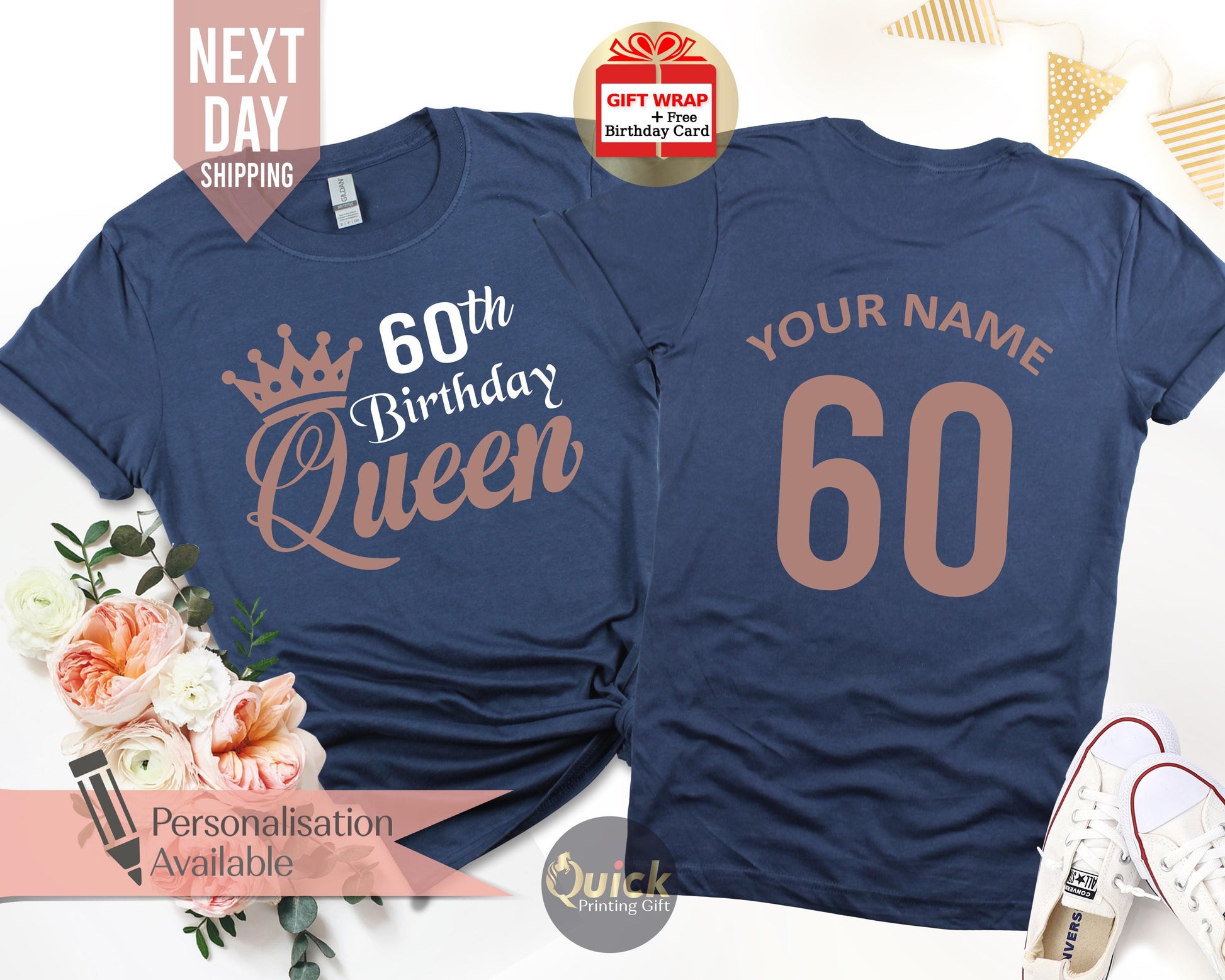 Personalised 60th Birthday Tshirt for Woman, Ladies Birthday Queen TShirts, 1965 Birthday Gifts for women, Vintage Birthday Gift Mum Grandma