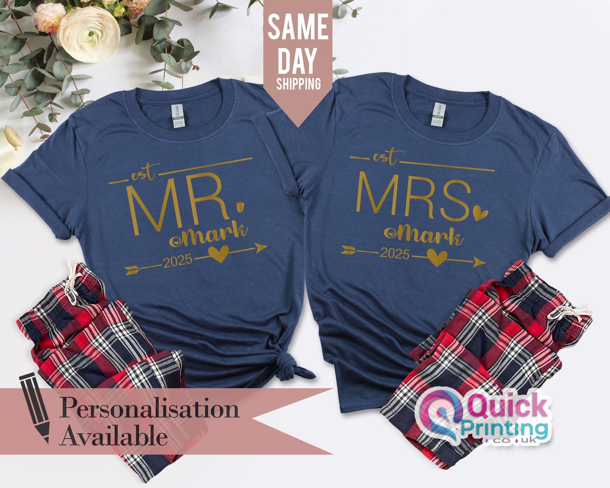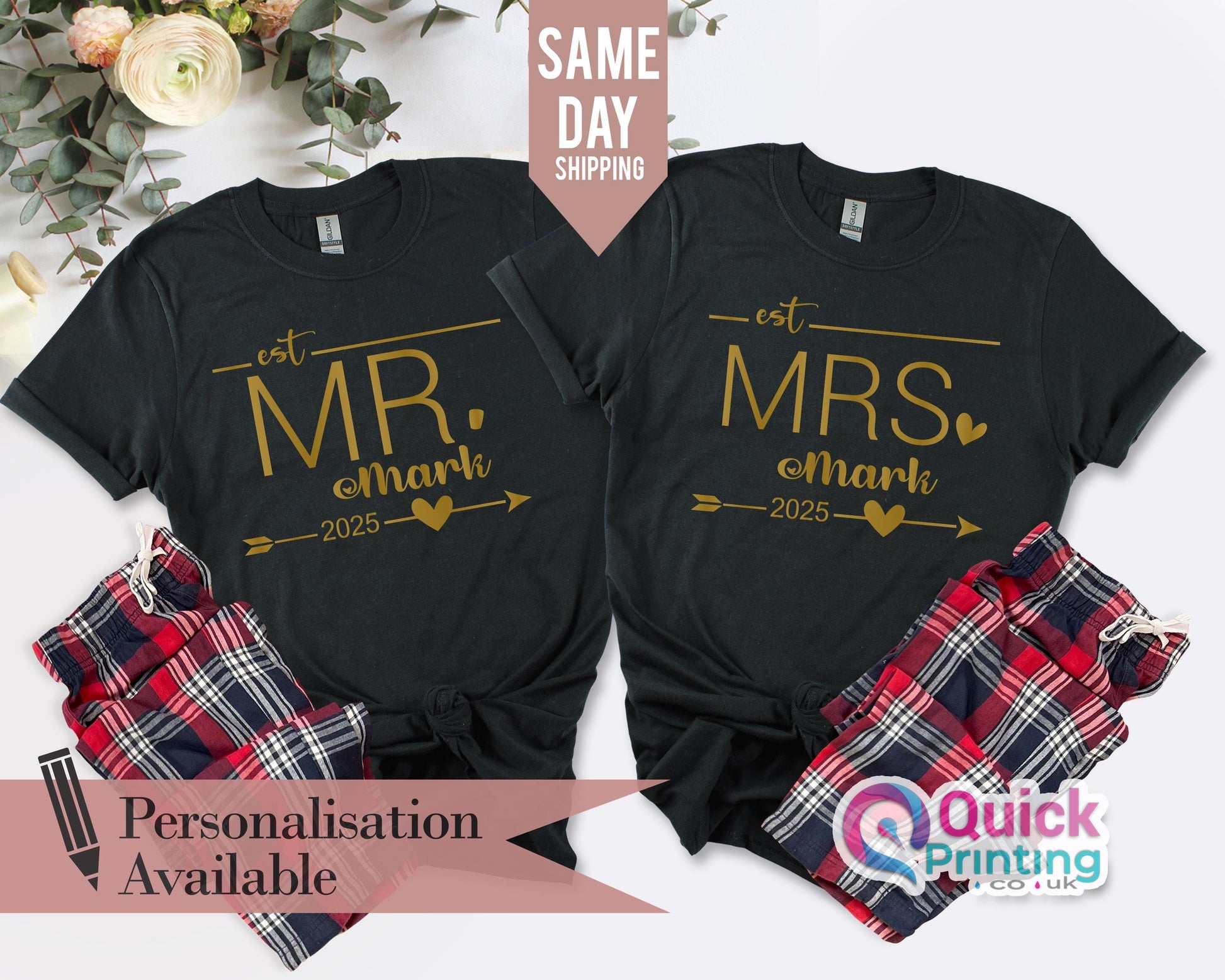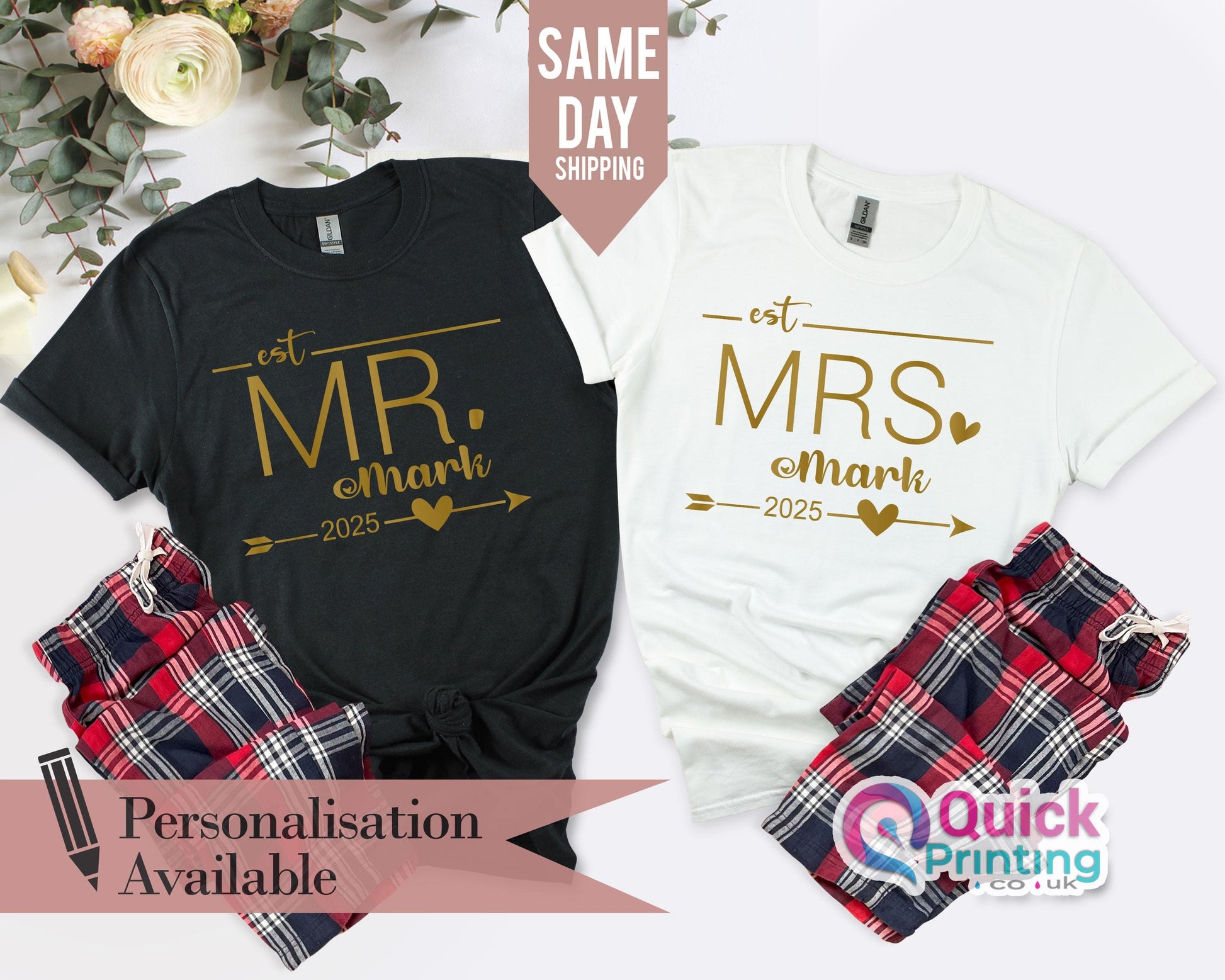 Personalised Mr Mrs Tshirt, Hubby Wifey Shirts, Bride Groom Tshirt, Newlywed Tshirt Gift, Honeymoon Couple Tshirt, Wedding Gift for her him
