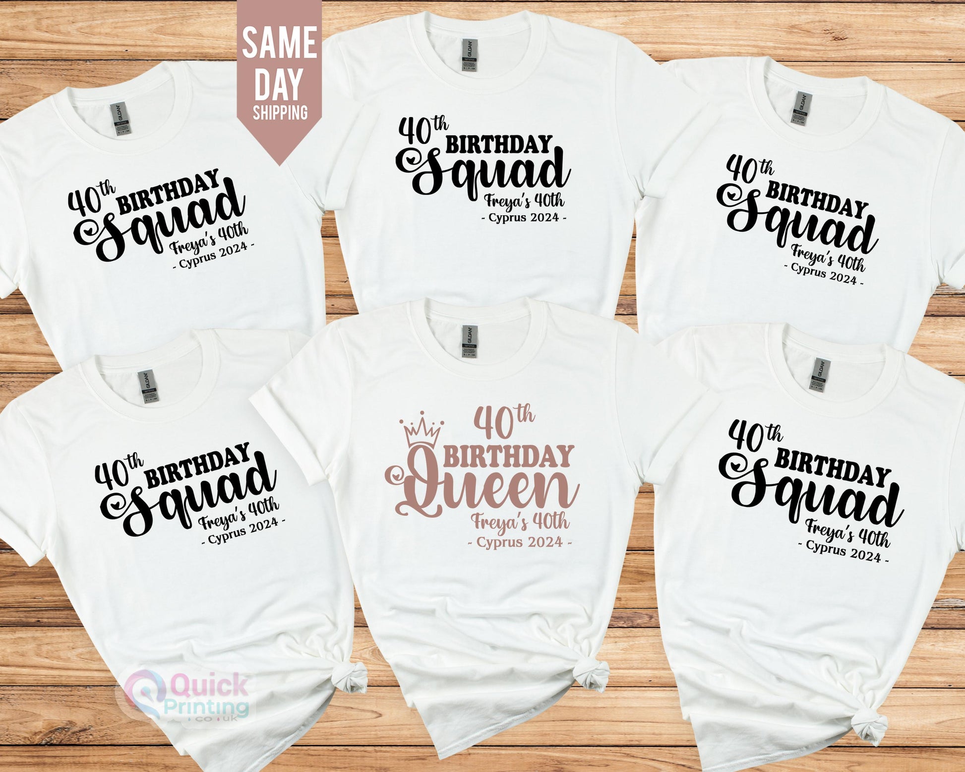 Example: 40th Birthday Queen on White T Shirt with Pink Text