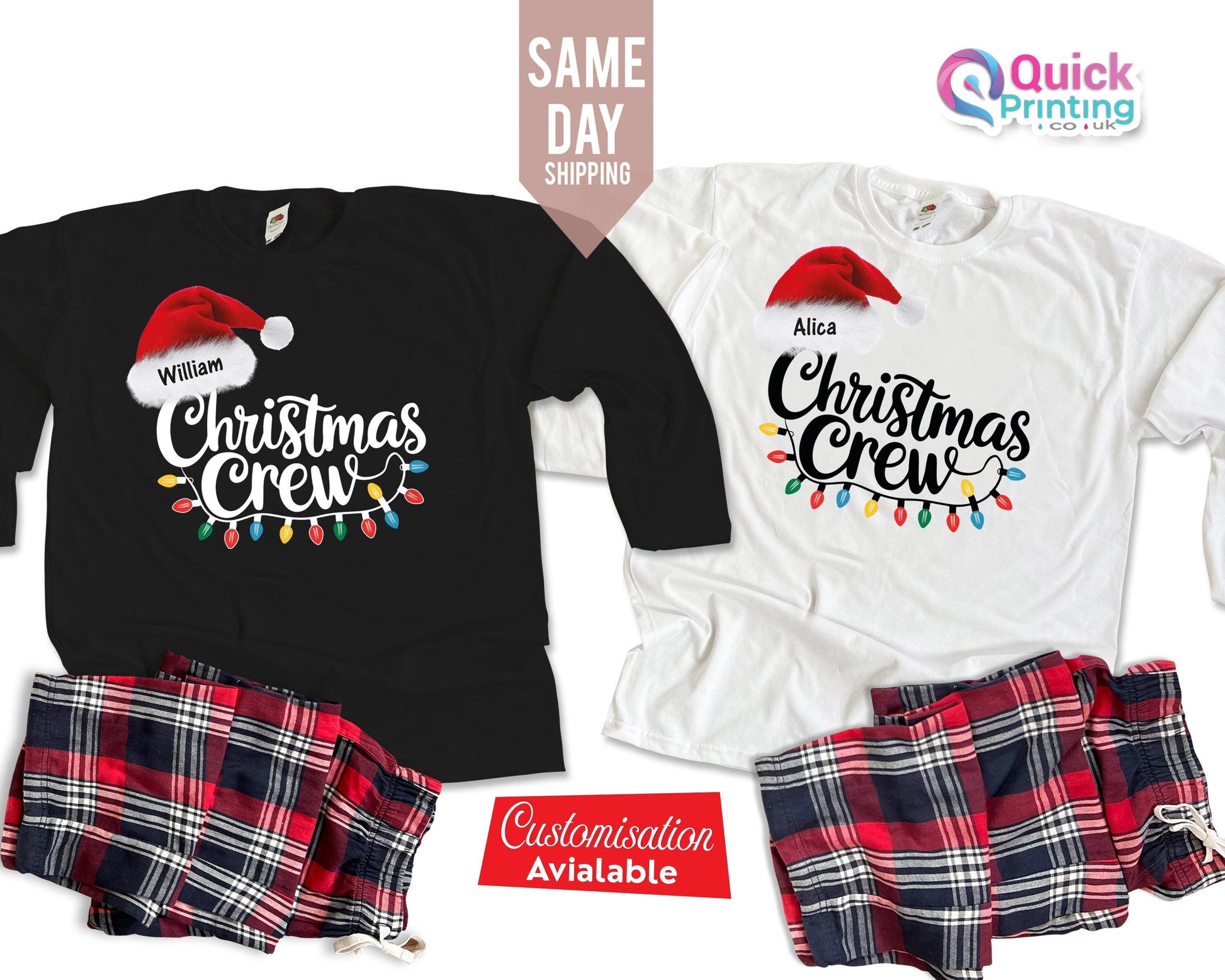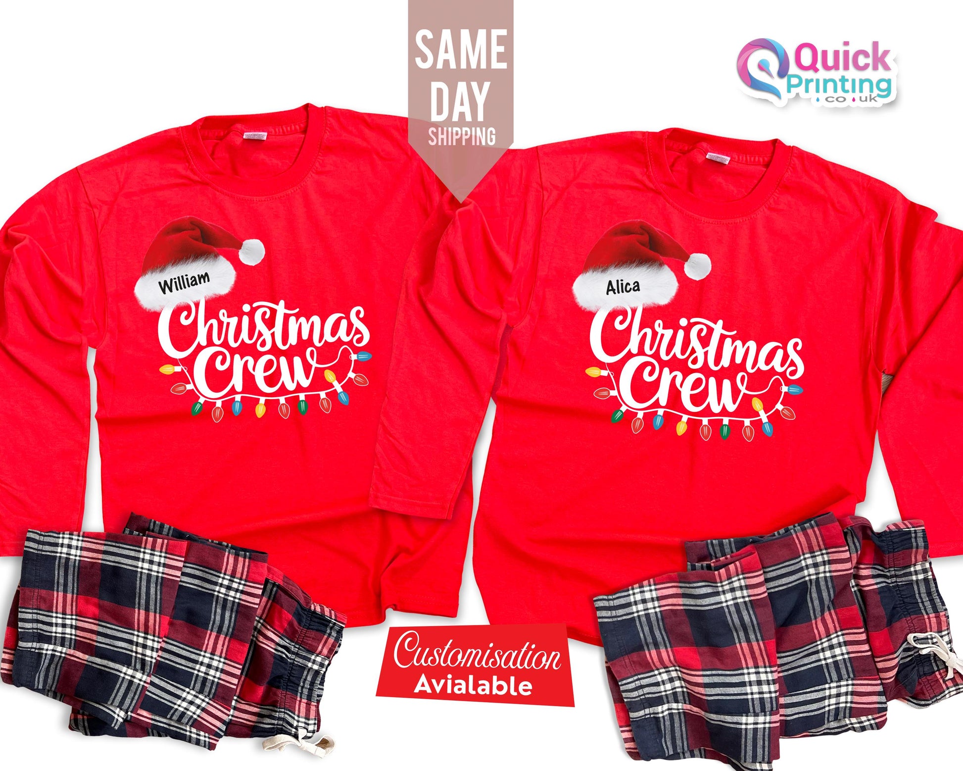 Personalized Christmas Crew Long Sleeve Shirt: Matching Family Pajama Set