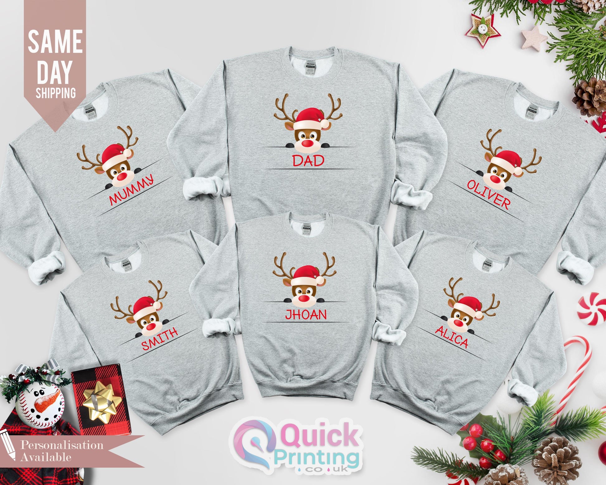 Personalized Christmas Reindeer Family Sweatshirt: Add Any Name