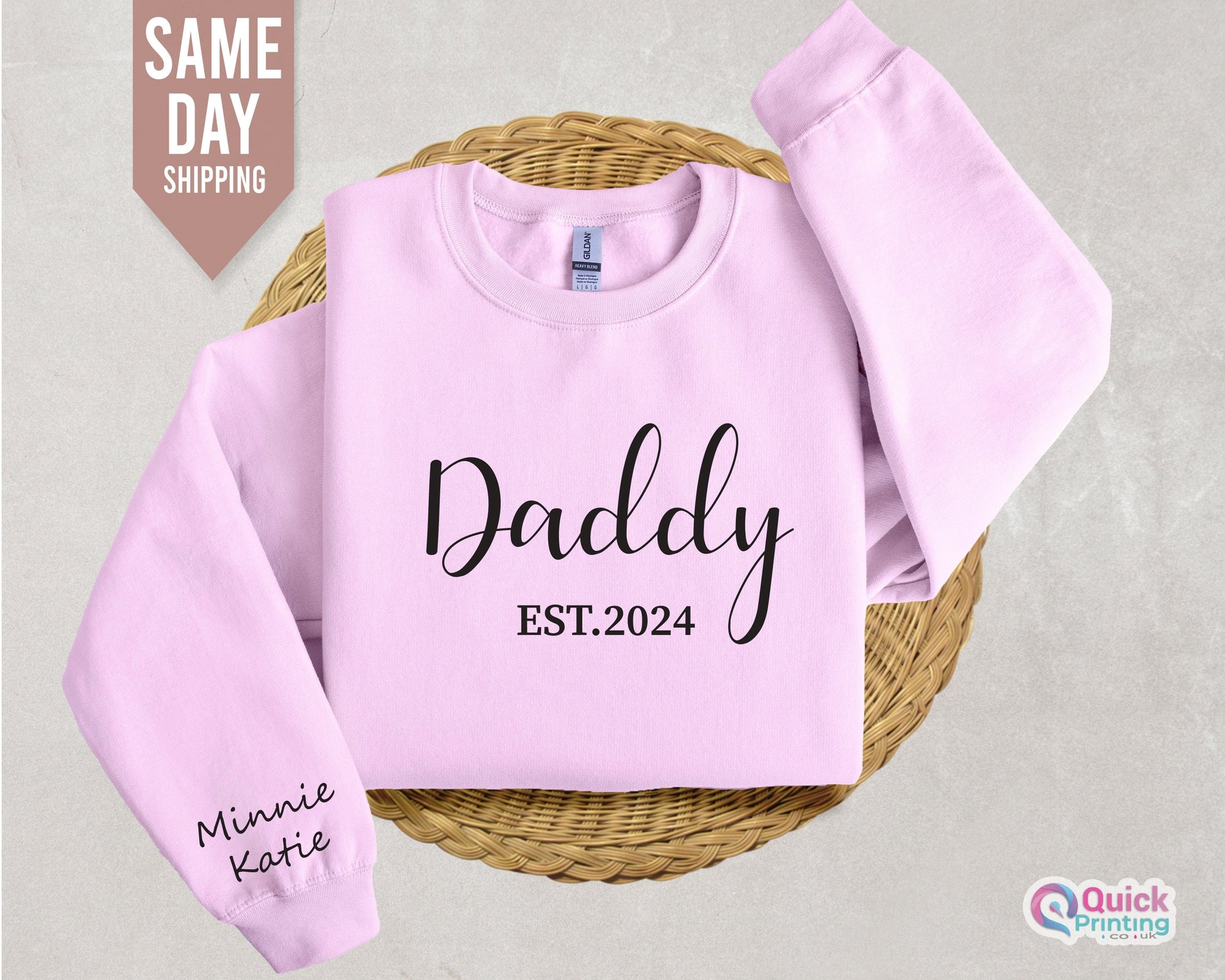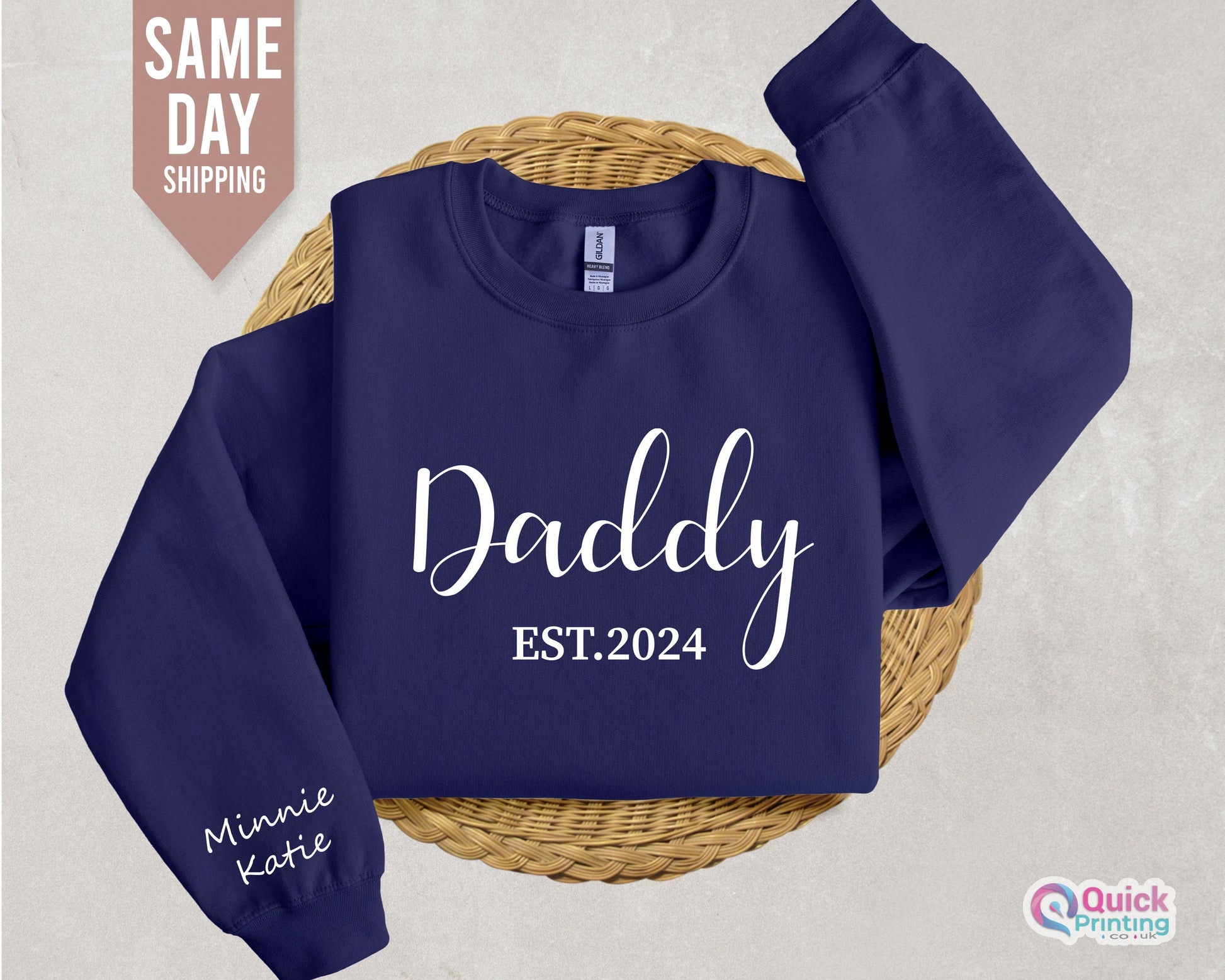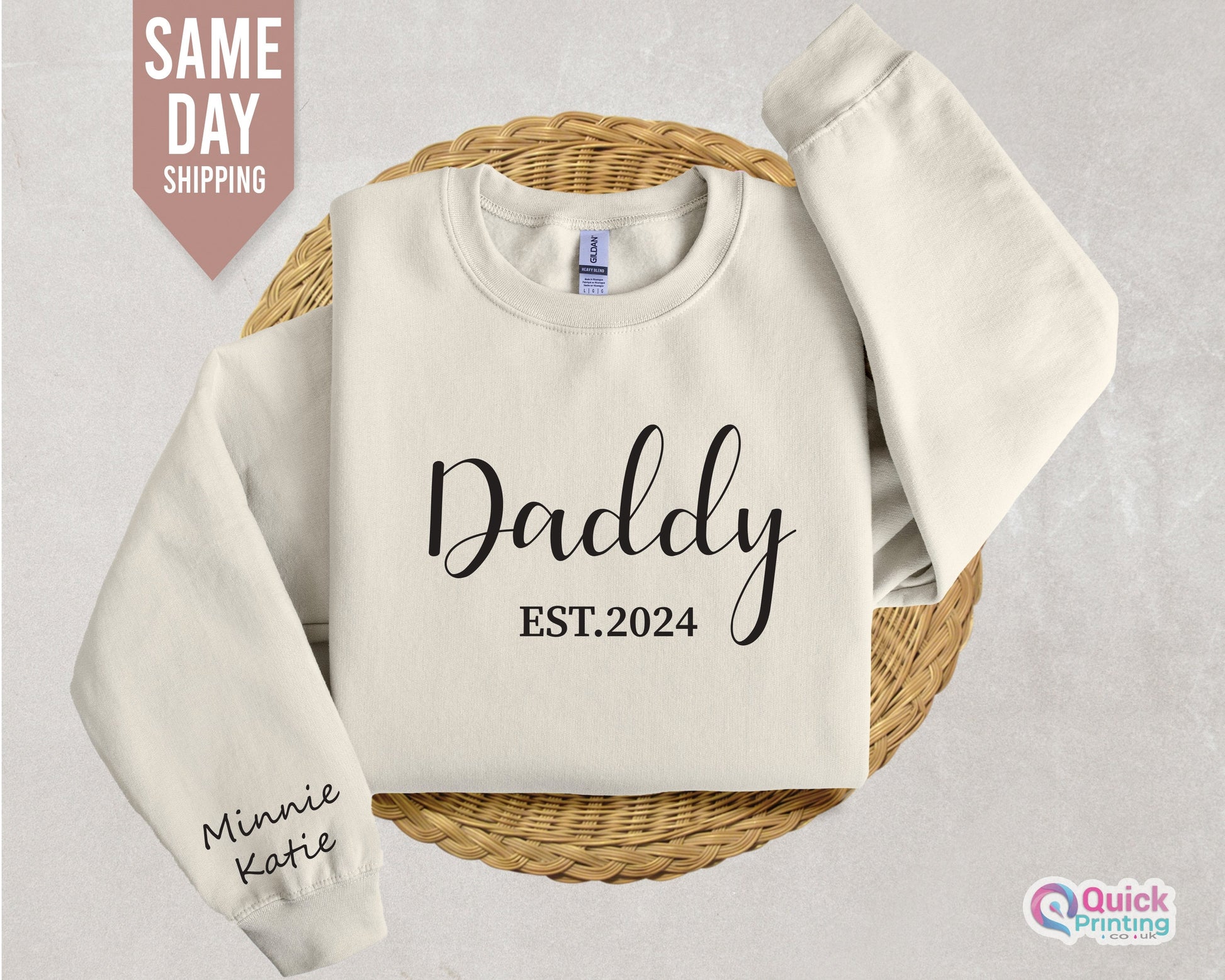 Personalized Daddy Sweatshirt: Custom Name Sleeve, Dad To Be Gift