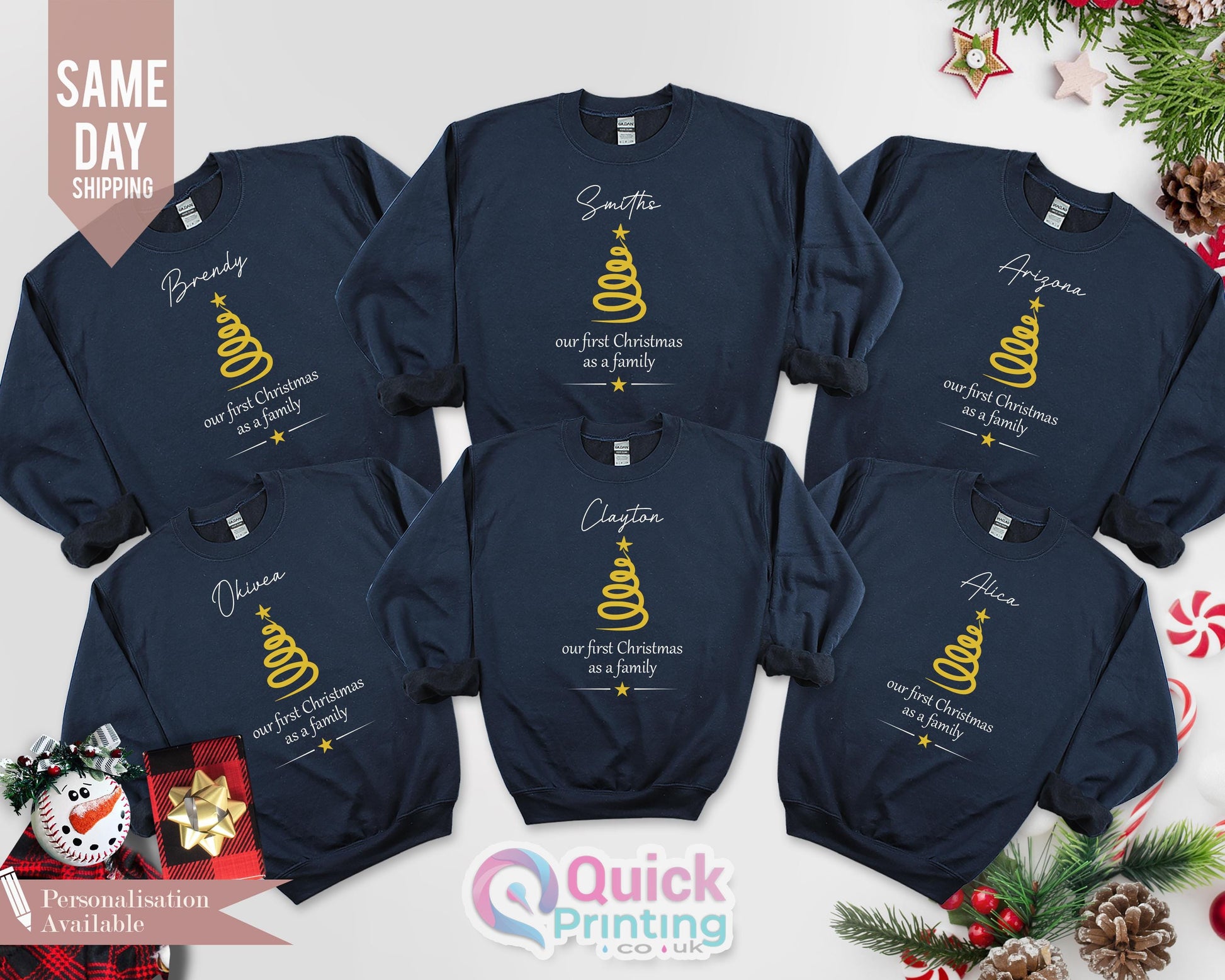 Personalized Family Christmas Sweatshirt: First Christmas Matching Set
