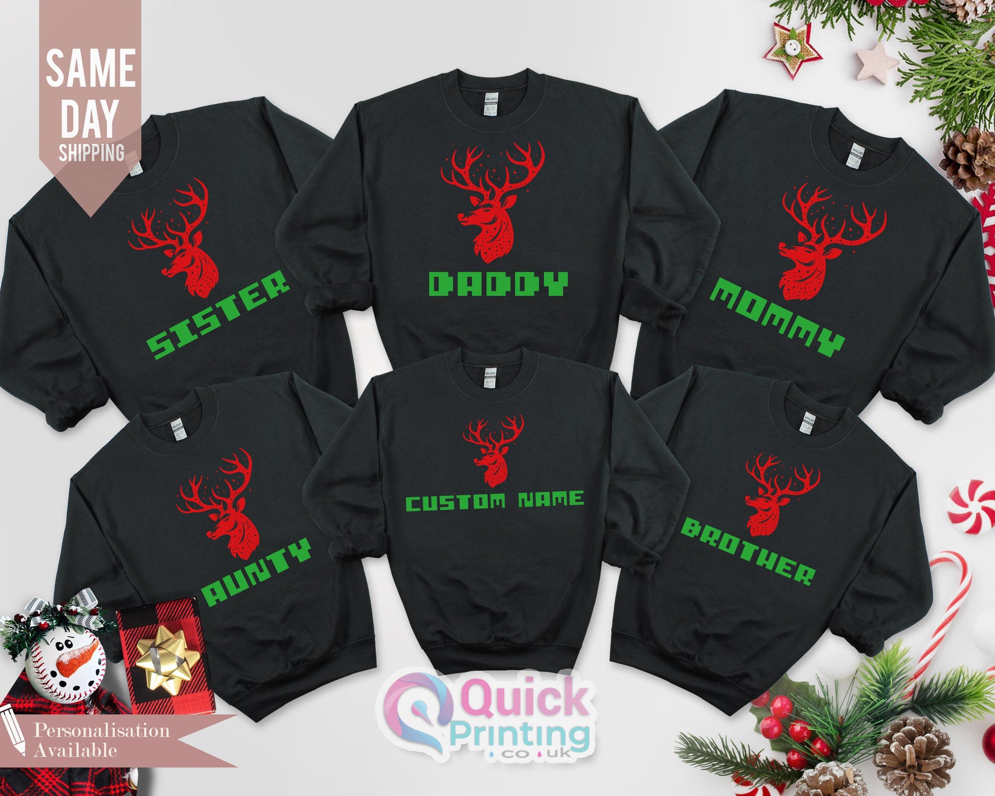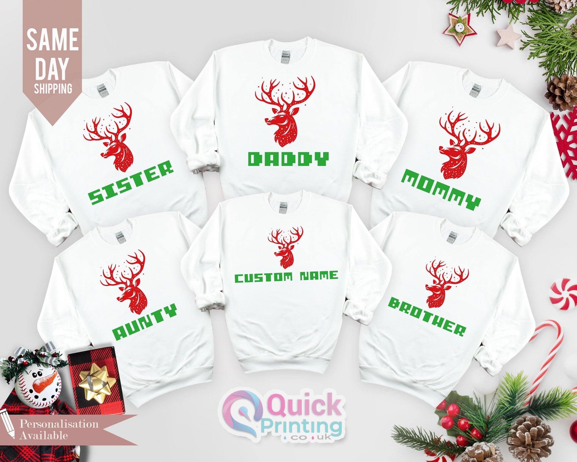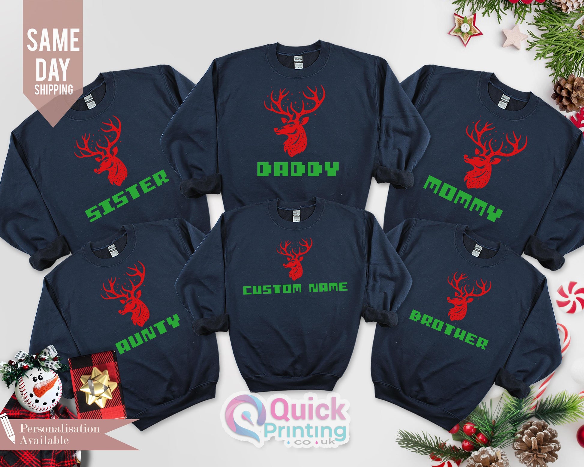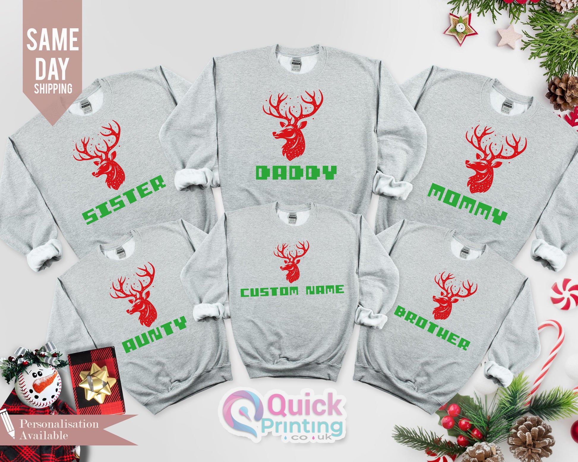 Personalized Family Christmas Sweatshirt: Reindeer Matching Jumpers