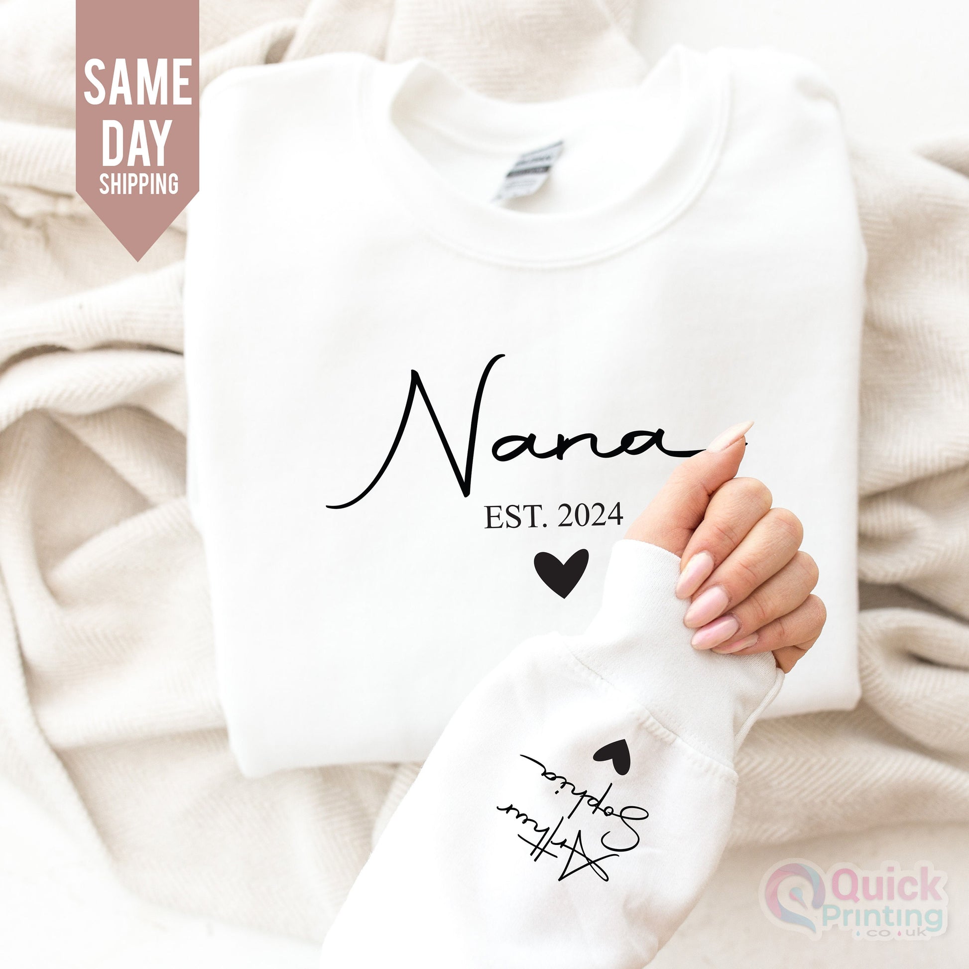 Personalized Nana jumper, Custom Grandparent Sweatshirt with Name on Sleeve, Birthday Tee, Minimalist granny jumper, Christmas Gift for Nana
