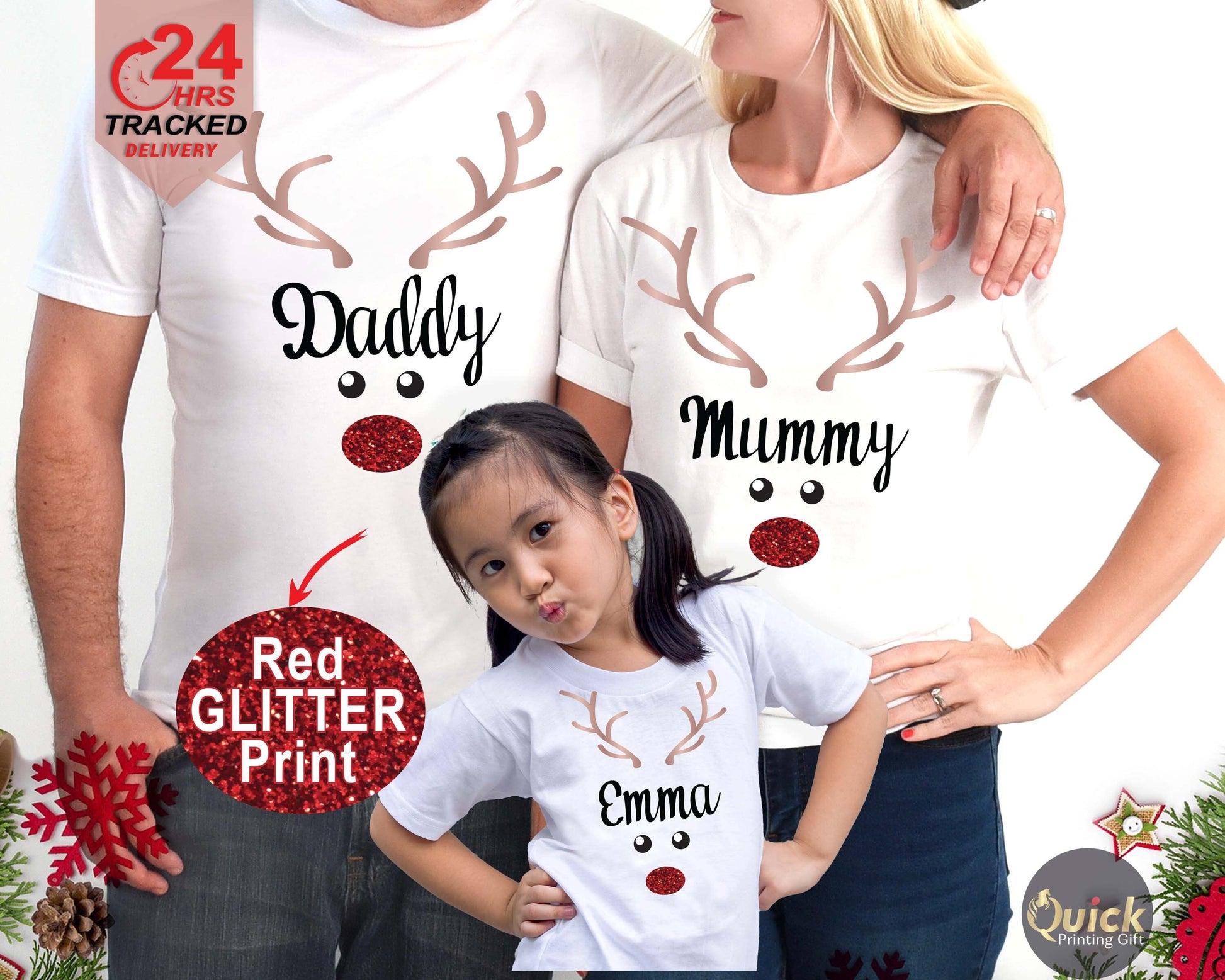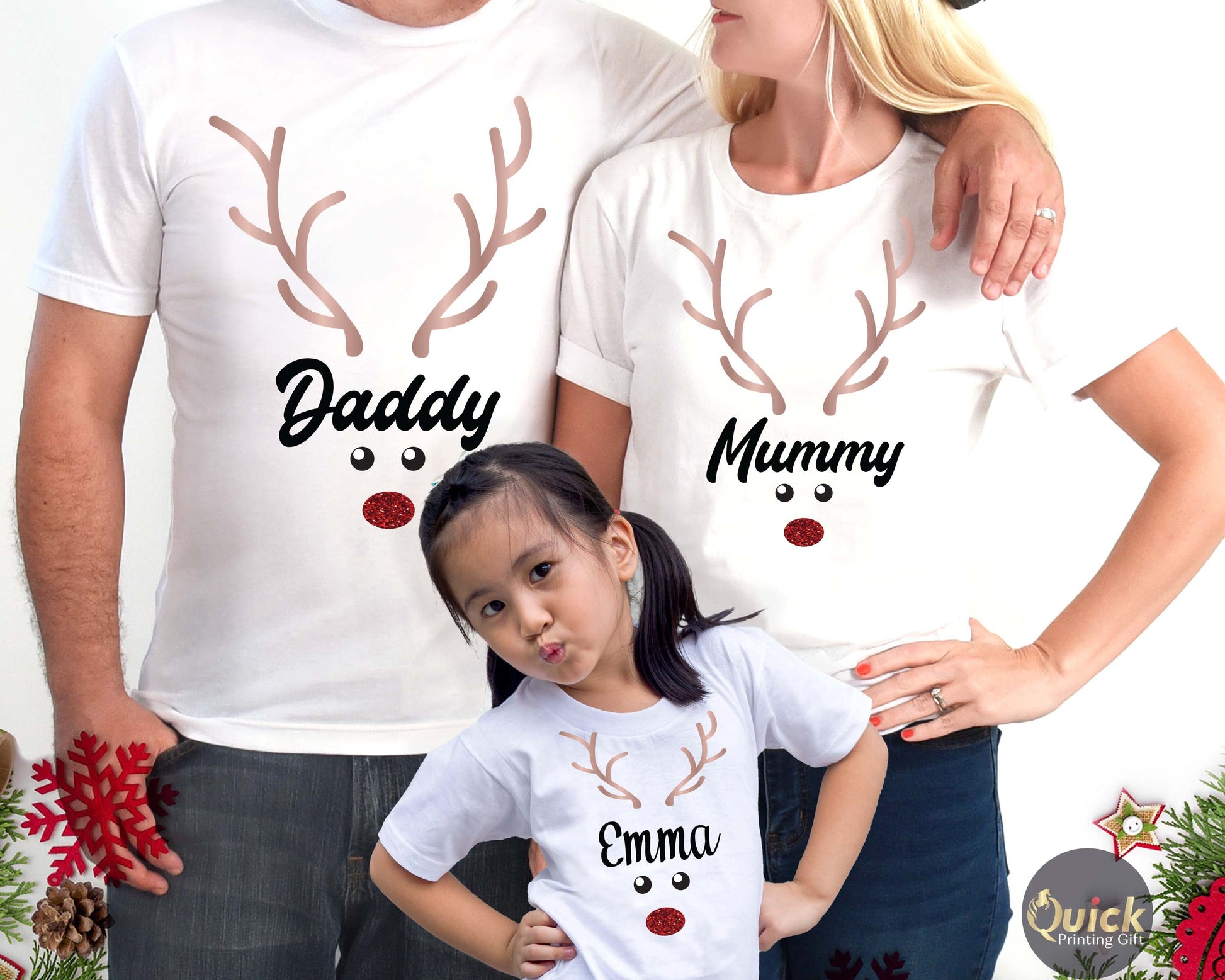 Custom Reindeer Christmas tshirts for Family, Matching Family Christmas, Plus Size Christmas T-Shirt. Personalised Christmas Gift for Family Friends